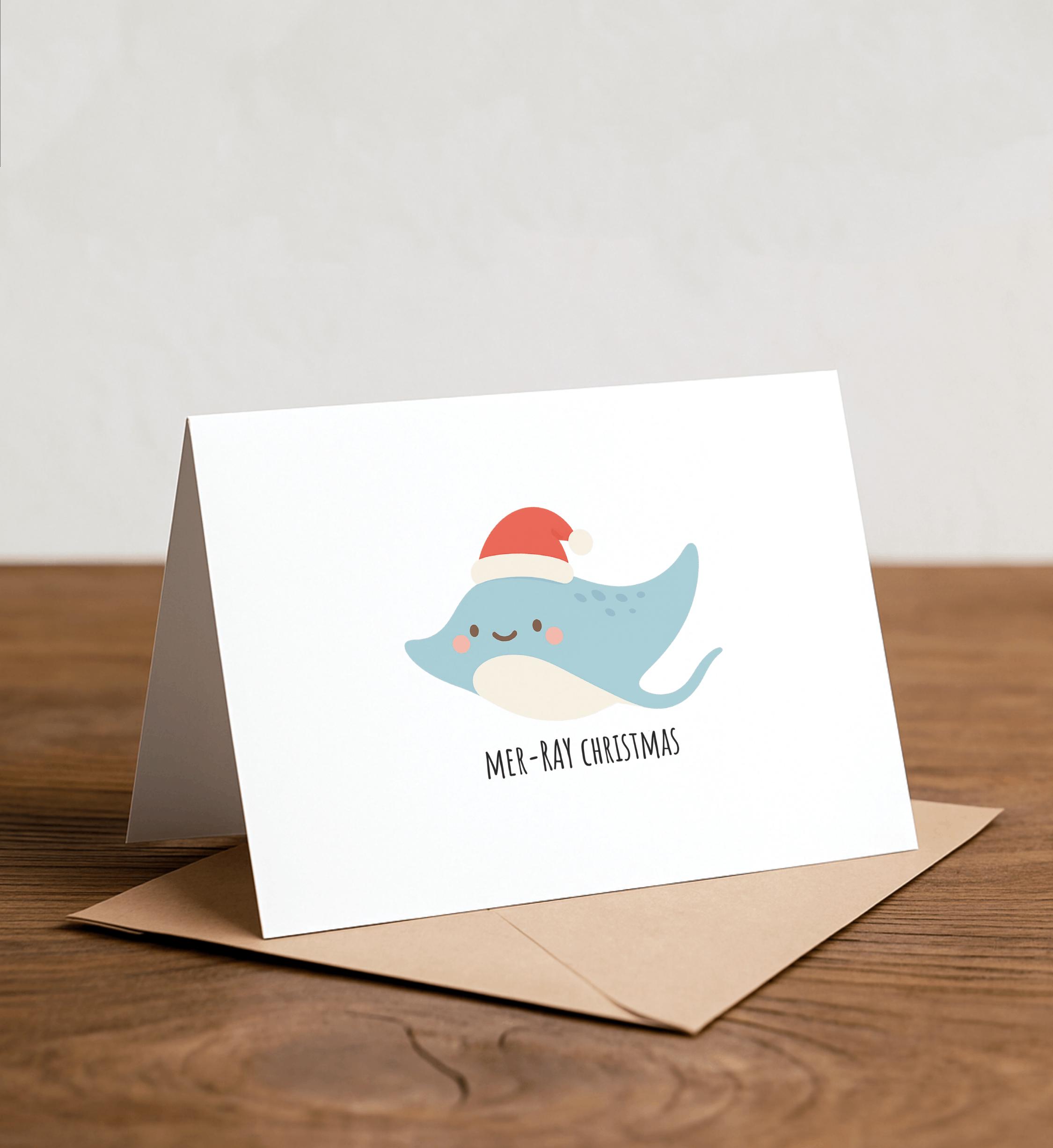 mer-RAY christmas - Manta ray Christmas card, Sea creature, Ocean, Aquarium