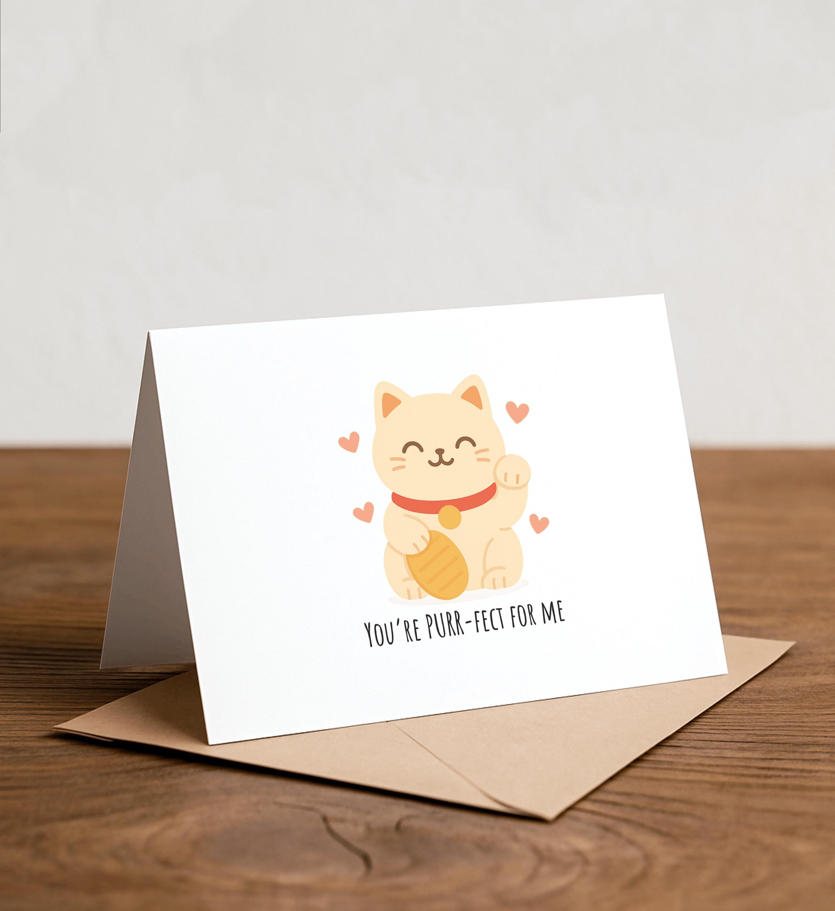 You’re PURR-fect for me - Lucky cat Greeting Card - Handmade Happy Card