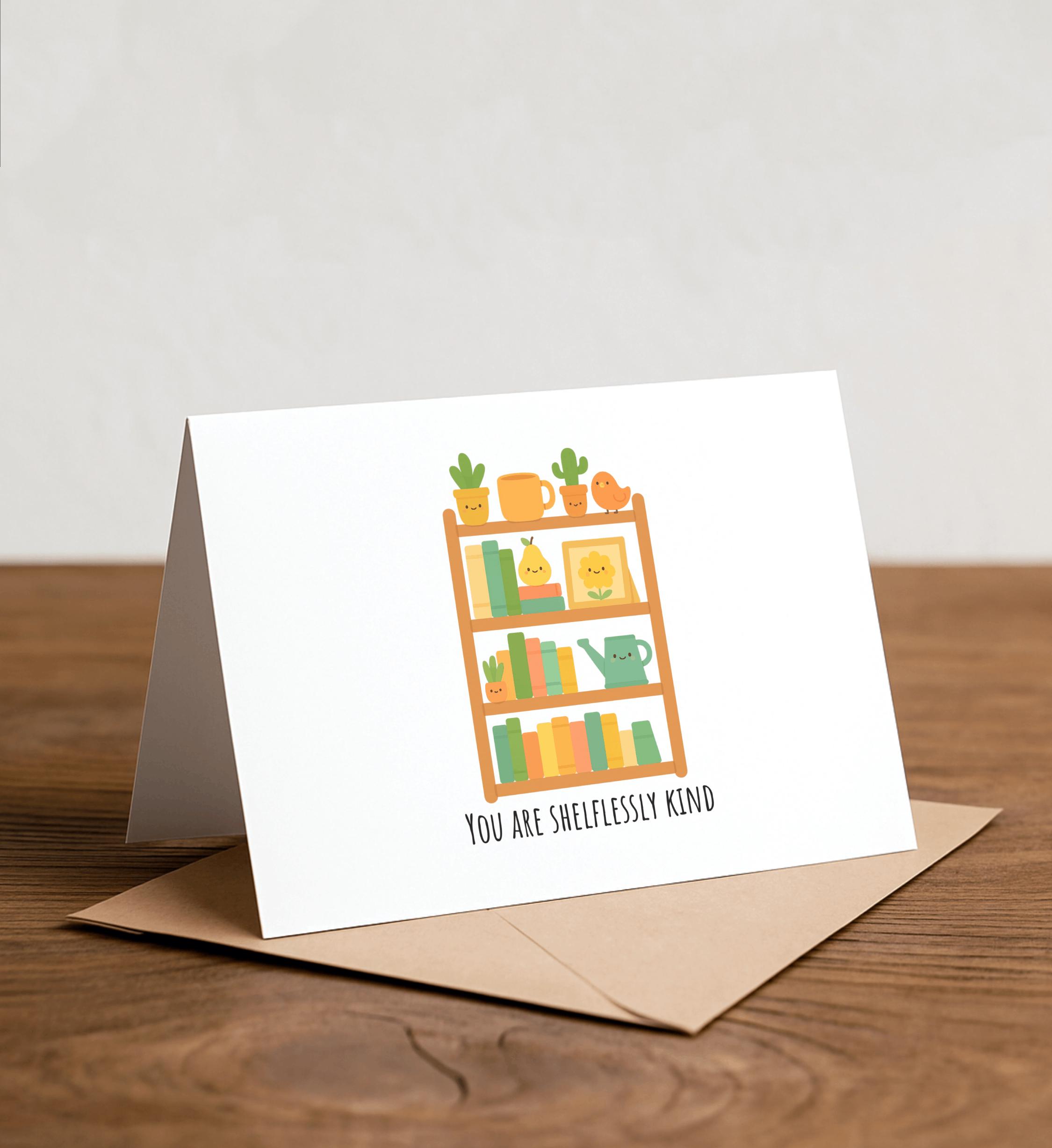 You are shelflessly kind - general thank you card, book lover card, literary pun