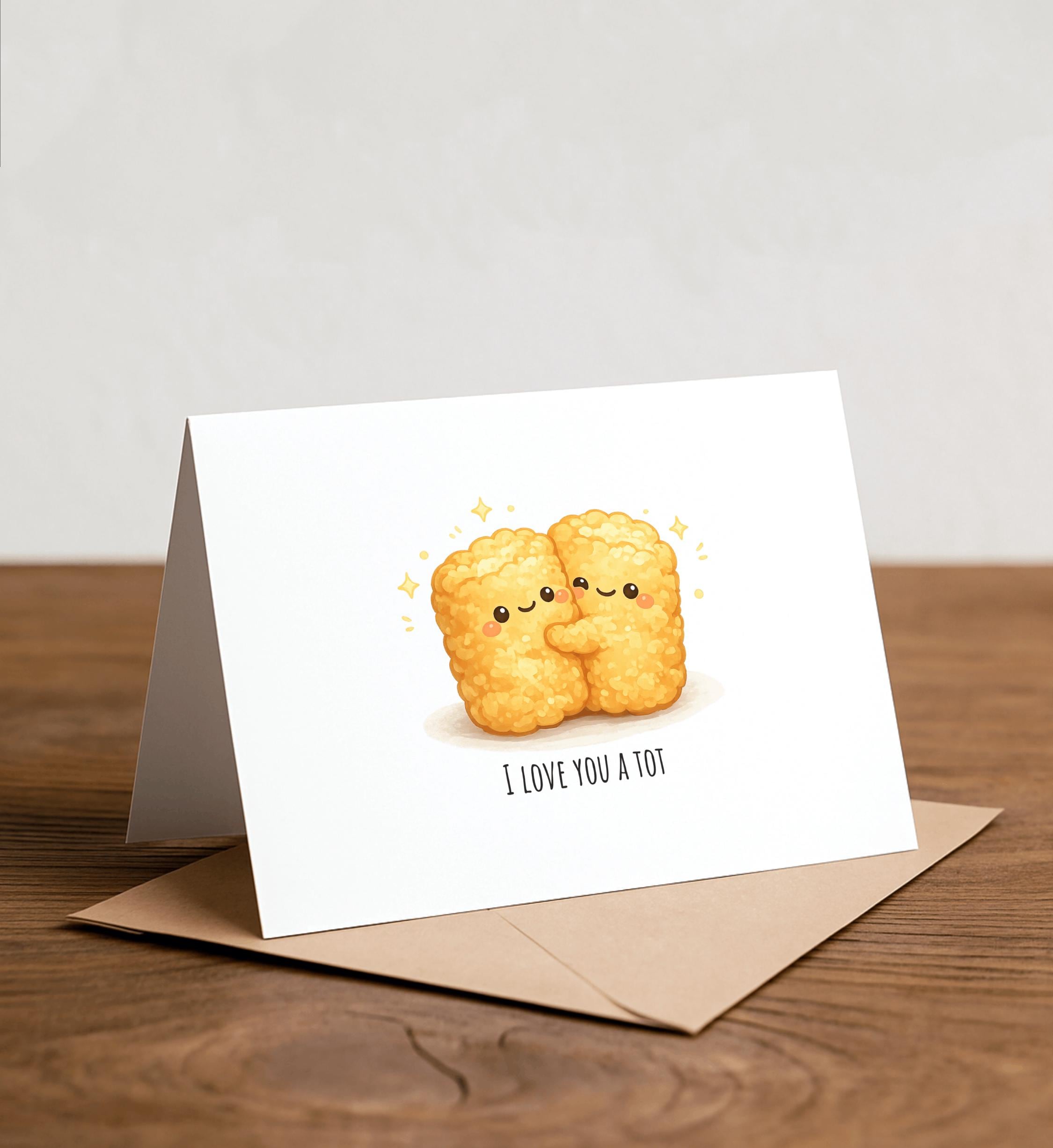 I love you a TOT - tater tots, funny love pun card