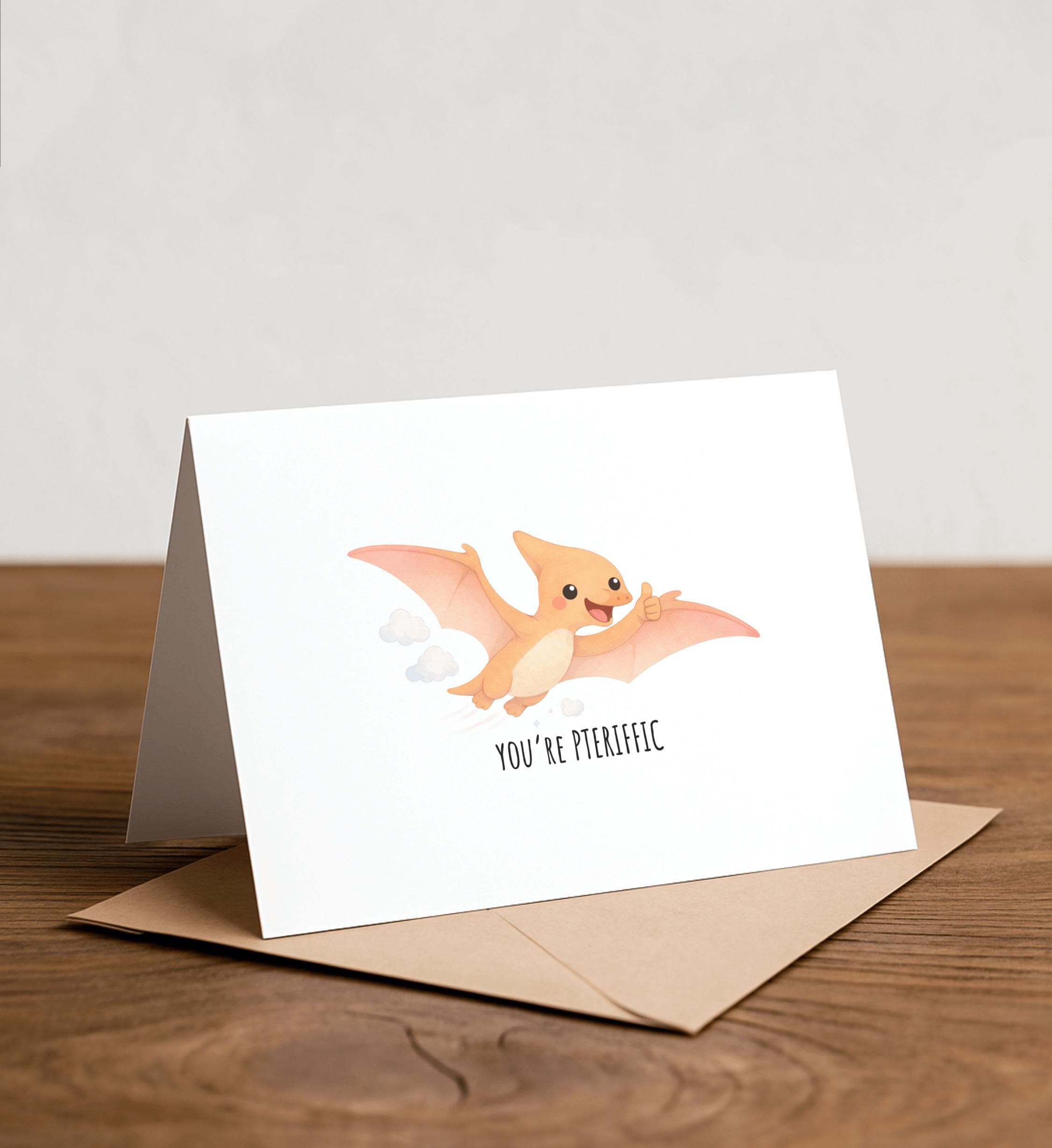 you’re PTERIFFIC: Dinosaur love card, thank you card