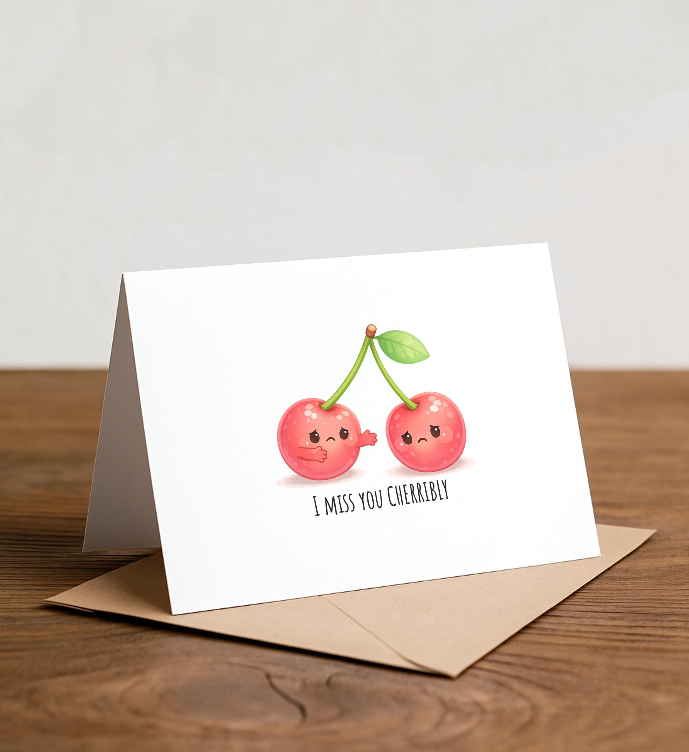 Handmade Cherry Pun Greeting Card – I Miss You Cherribly, Long Distance Card