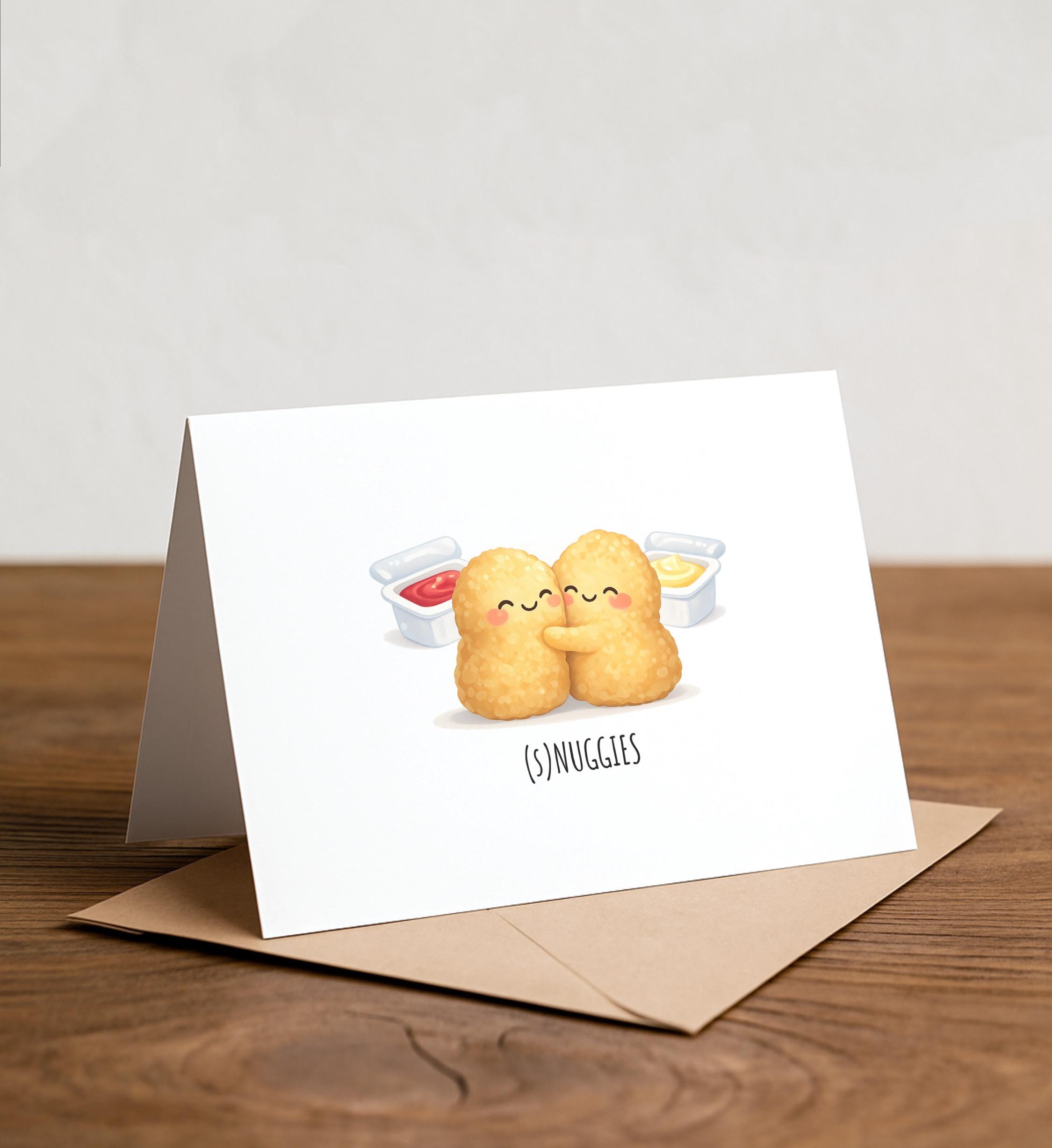 Chicken Nuggets Greeting Card: snuggles, NUGGIES