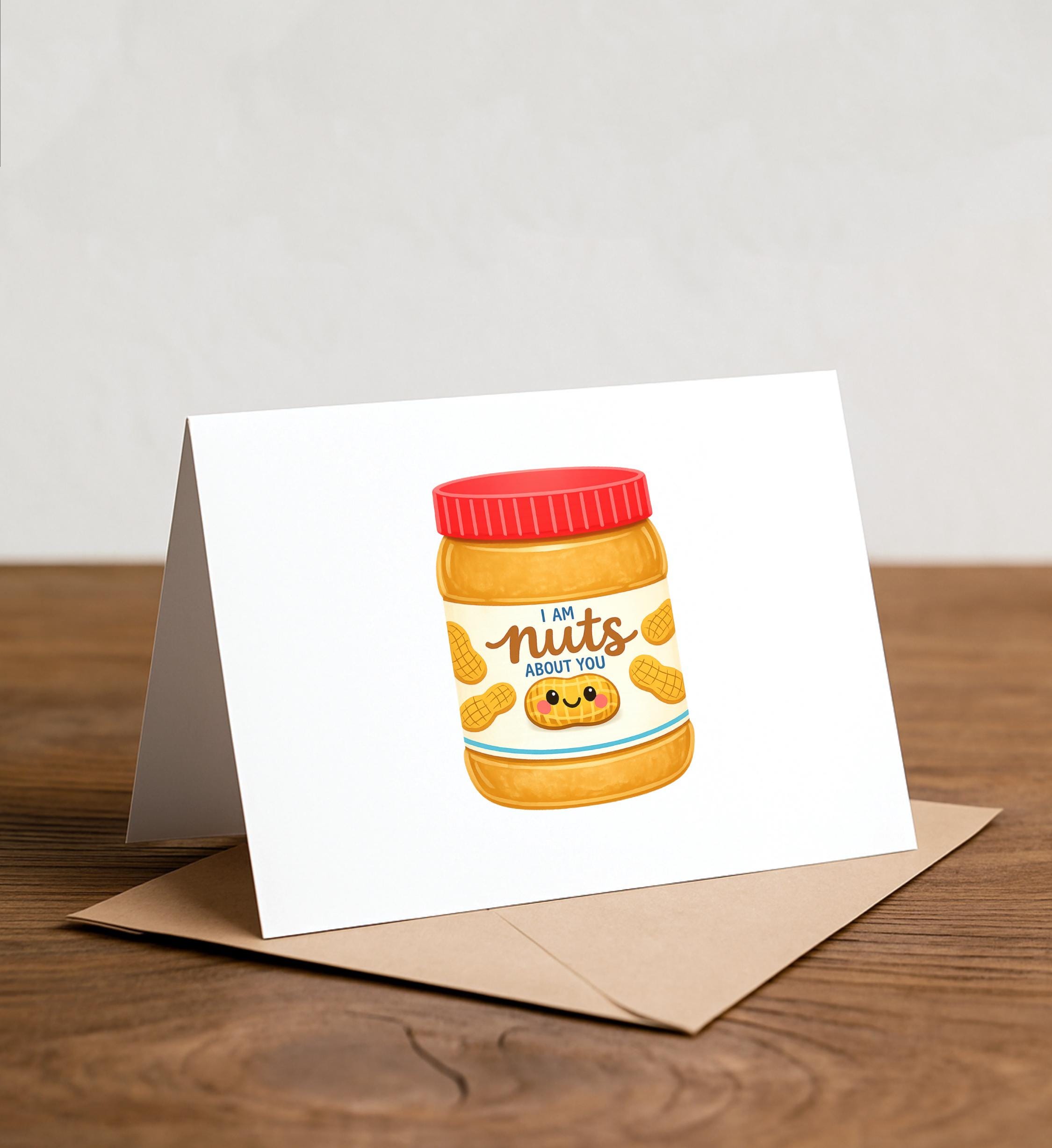 Peanut butter Pun Greeting Card: Funny Valentine Thank You, nuts about you