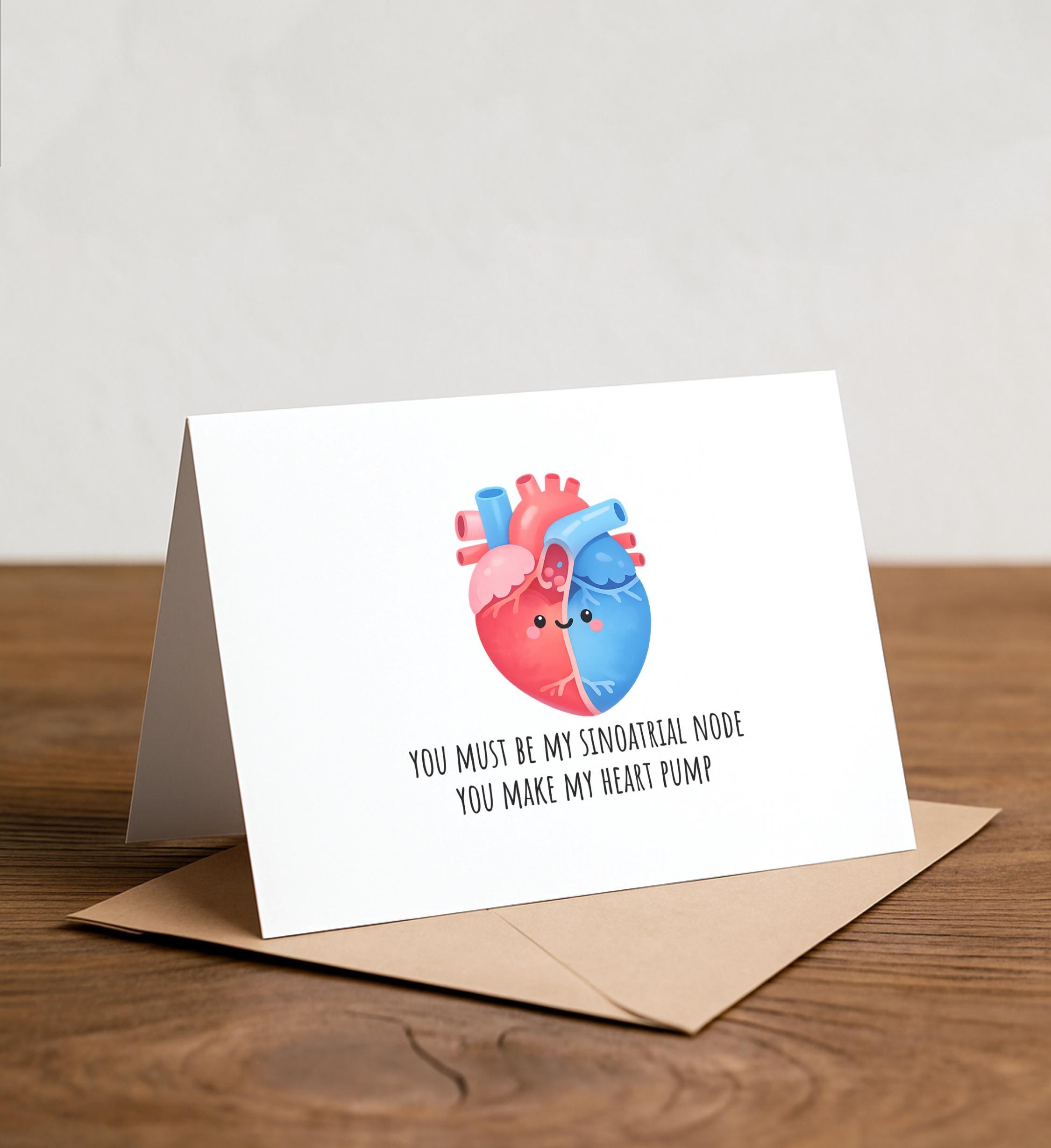 SA Node Valentine Card: Science Anniversary Pun Card, Cardiology, Heart