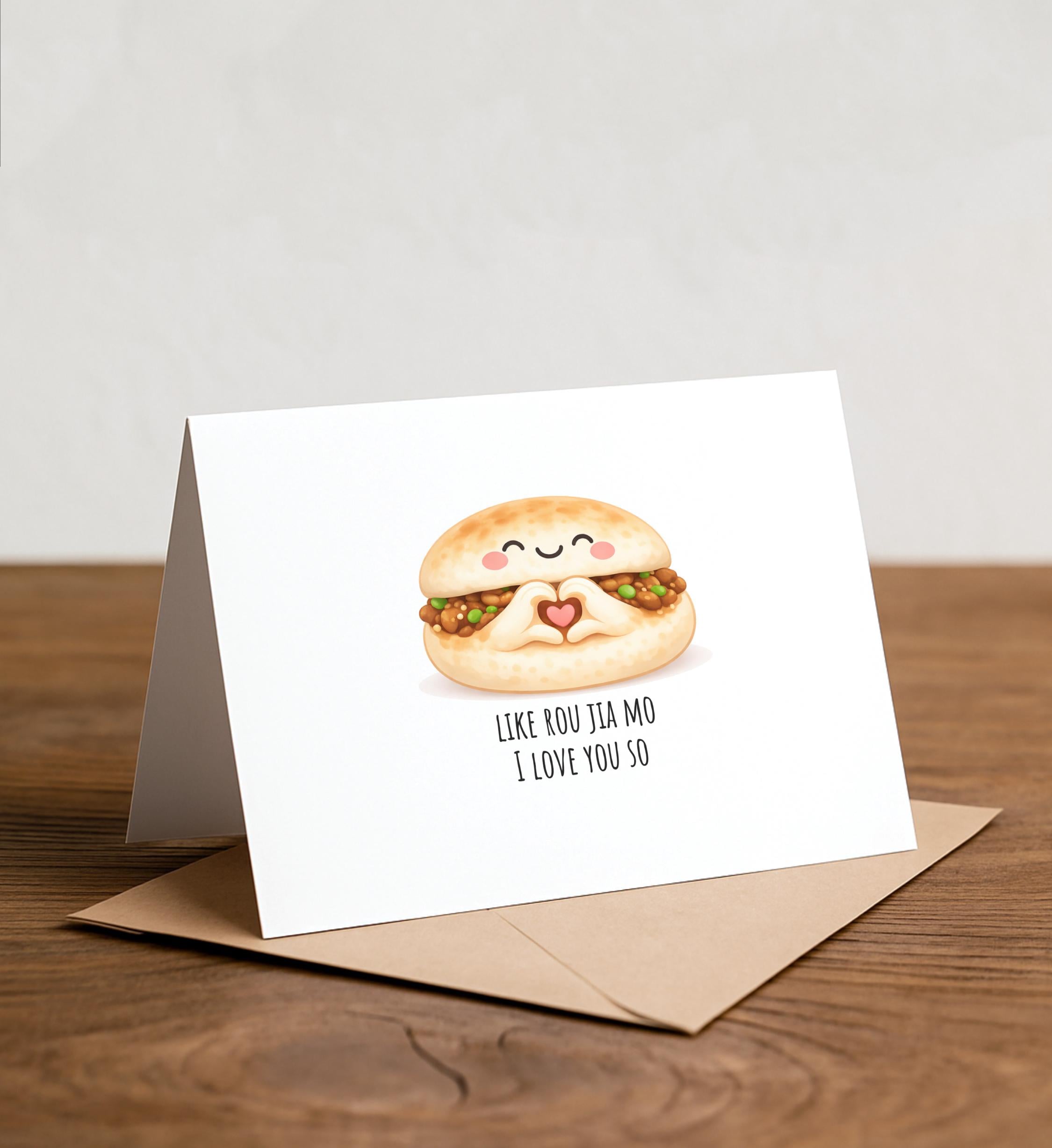 Rou Jia Mo Greeting Card: chinese food, dimsum, hamburger