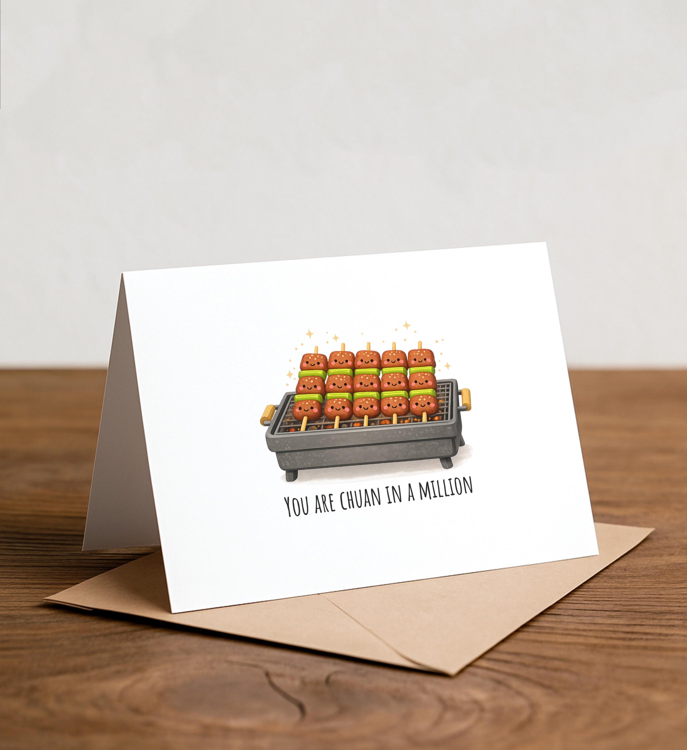 Handmade Chuan Greeting Card: Chinese Skewers, Grill Design (A2 Size)