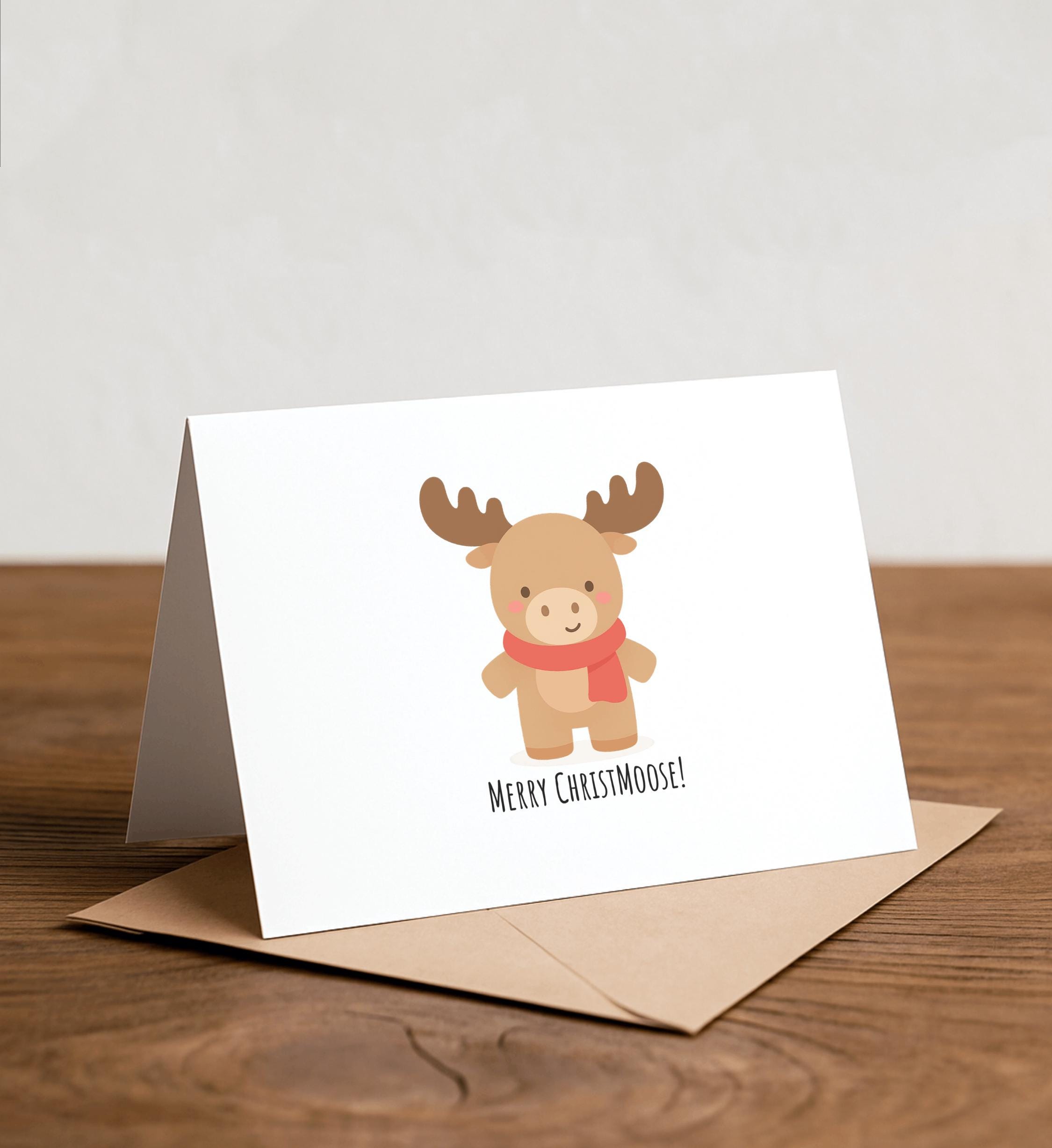 Merry CHRIST-MOOSE! - Moose Christmas Card, Funny Christmas Card, Simple Holiday Card, Punny Christmas Card, Nerdy Pun Card