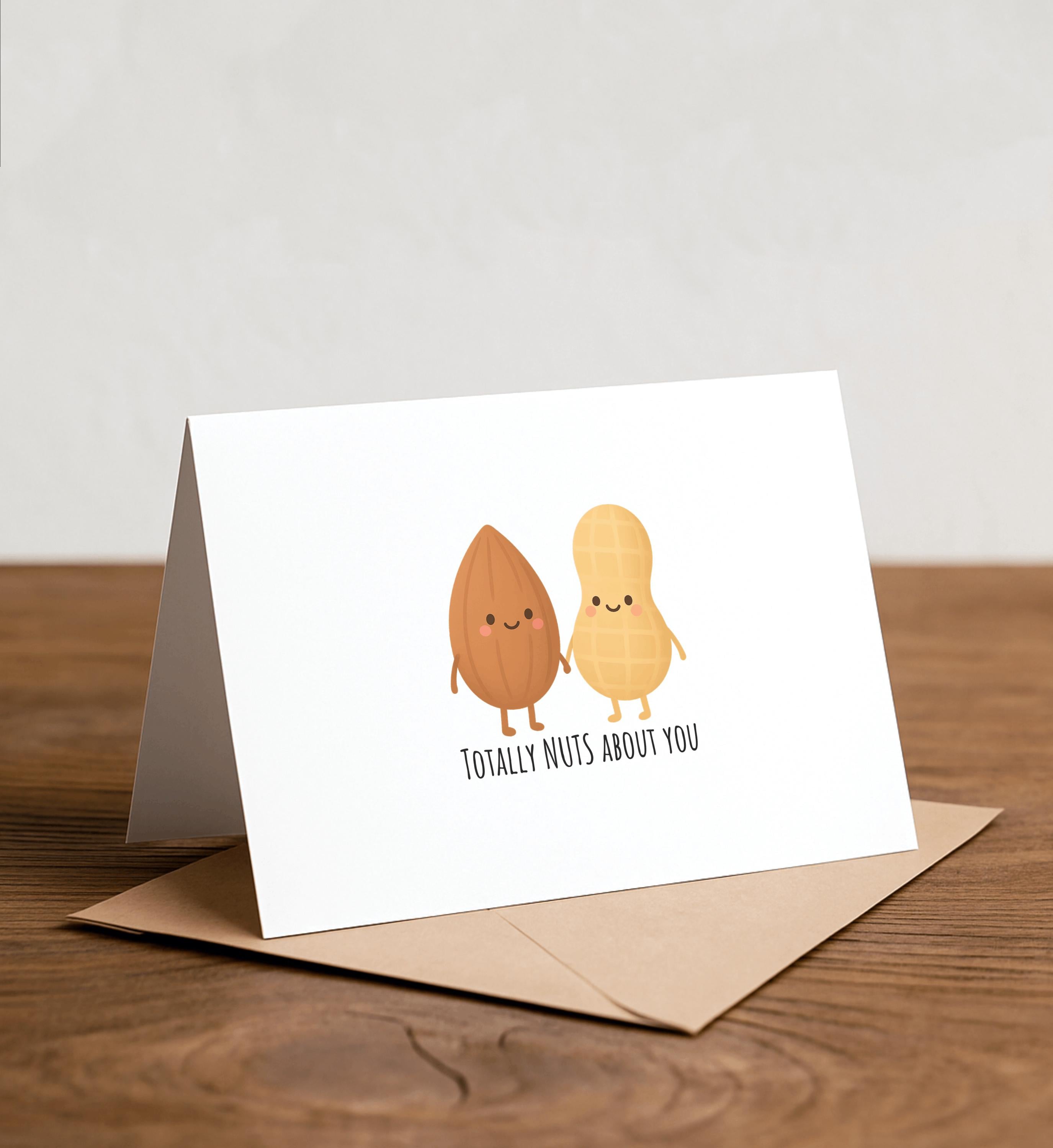 Nuts about you - Punny Greeting Card, Happy Card, I Love You Card, Foodie card, Birthday Card, Nerdy Pun Card, Punny Greeting Card