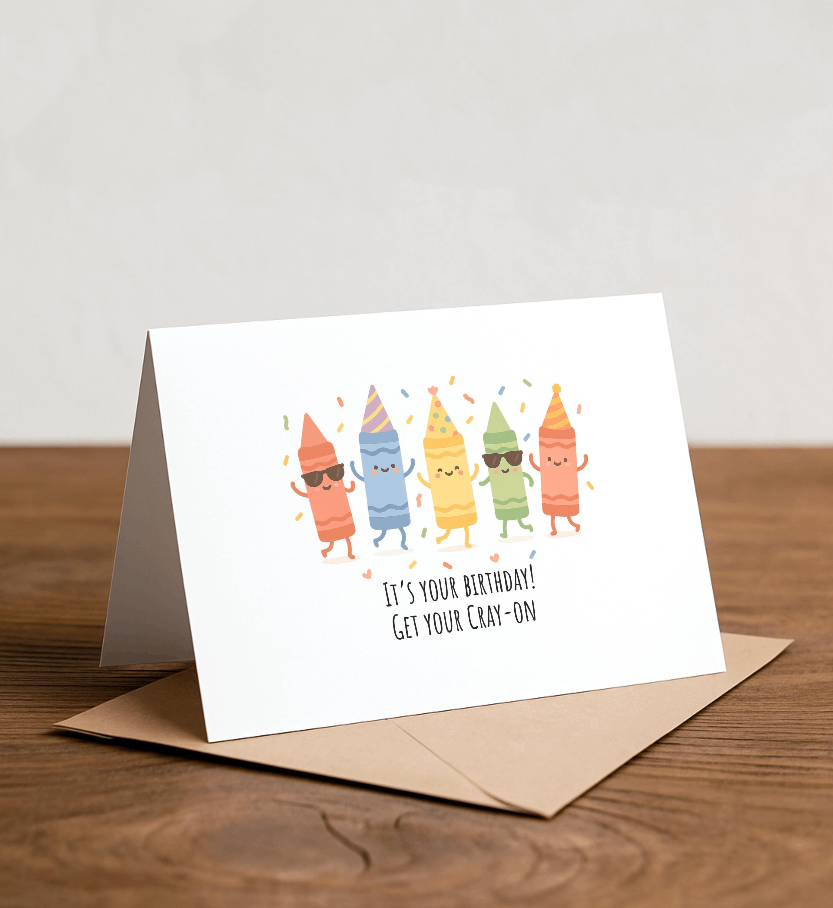 Get your CRAY on - Crayon Greeting Card, Happy Card, I Love You Card, Foodie card, Birthday Card, Nerdy Pun Card, Punny Greeting Card