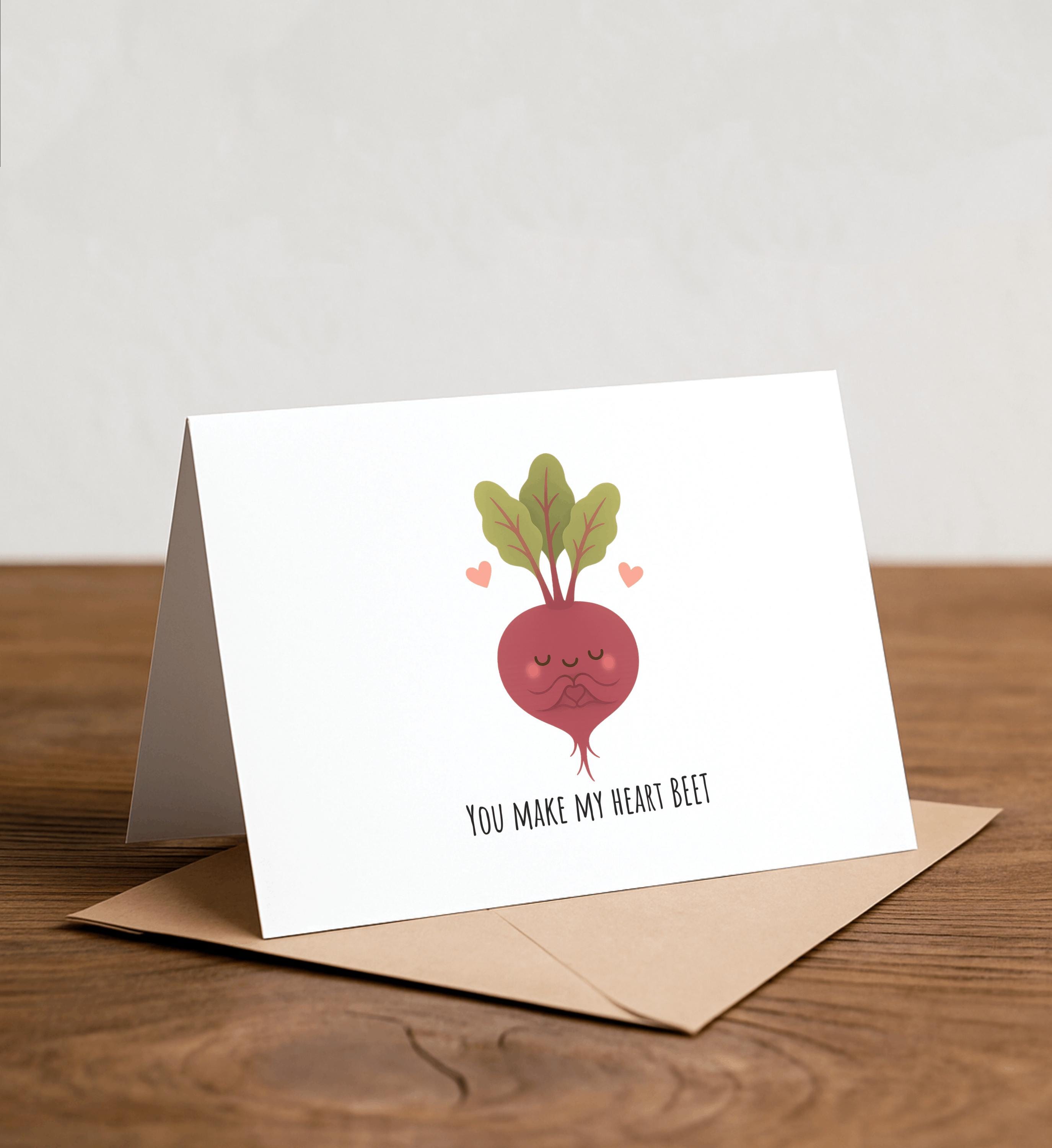You make my heart BEET - Beet Greeting Card, Happy Card, I Love You Card, Foodie card, Birthday Card, Nerdy Pun Card, Punny Greeting Card