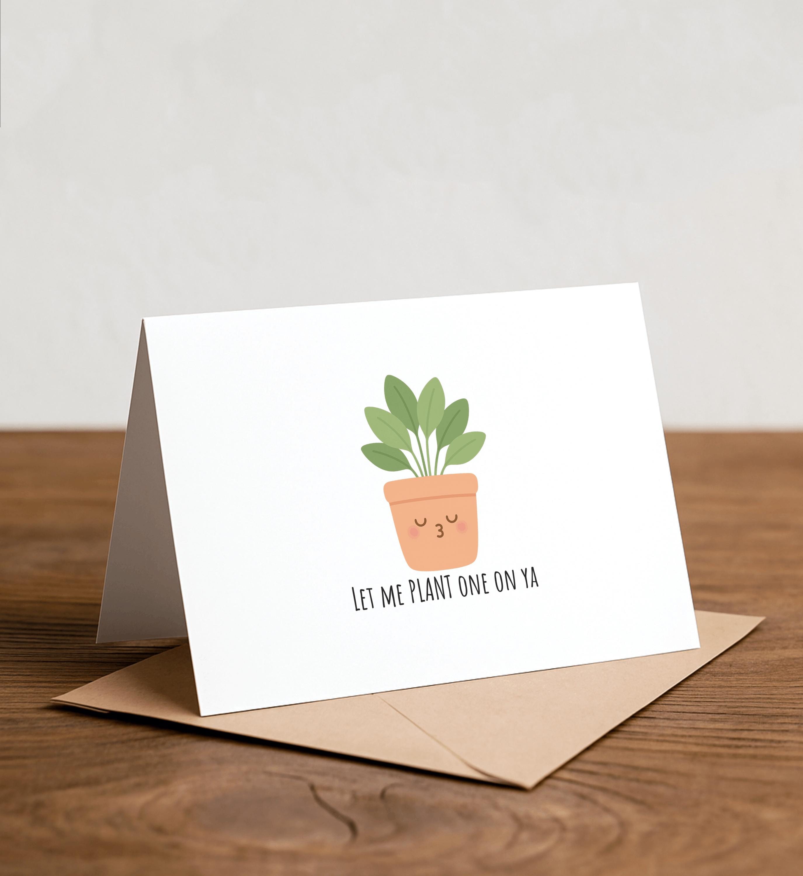 Let me PLANT one on ya - Plant Greeting Card, Happy Card, I Love You Card, Foodie card, Birthday Card, Nerdy Pun Card, Punny Greeting Card