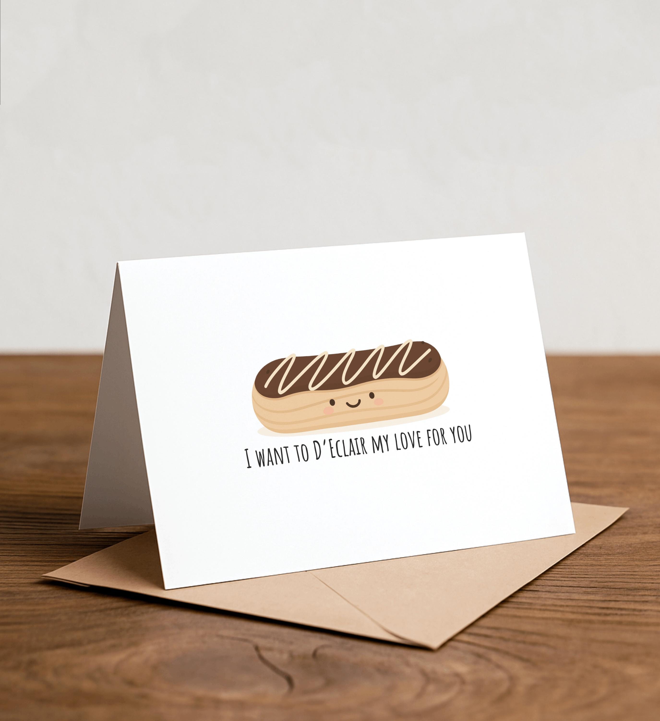 I want to D'ECLAIR my love for you - ECLAIR Greeting Card, I Love You Card, Foodie card, Birthday Card, Nerdy Pun Card, Punny Greeting Card