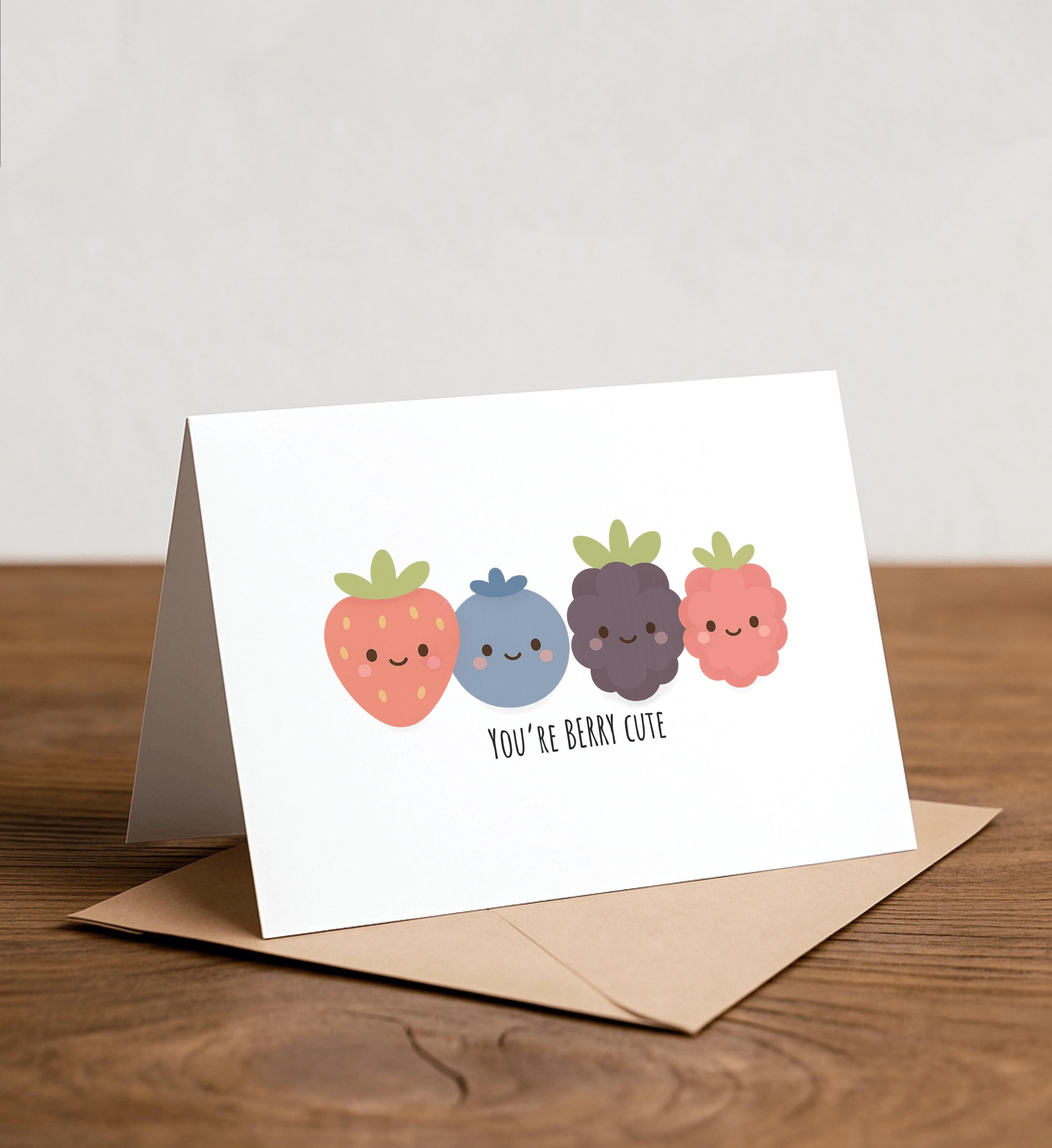 You're BERRY cute - Berry Greeting Card, Happy Card, I Love You Card, Foodie card, Birthday Card, Nerdy Pun Card, Punny Greeting Card