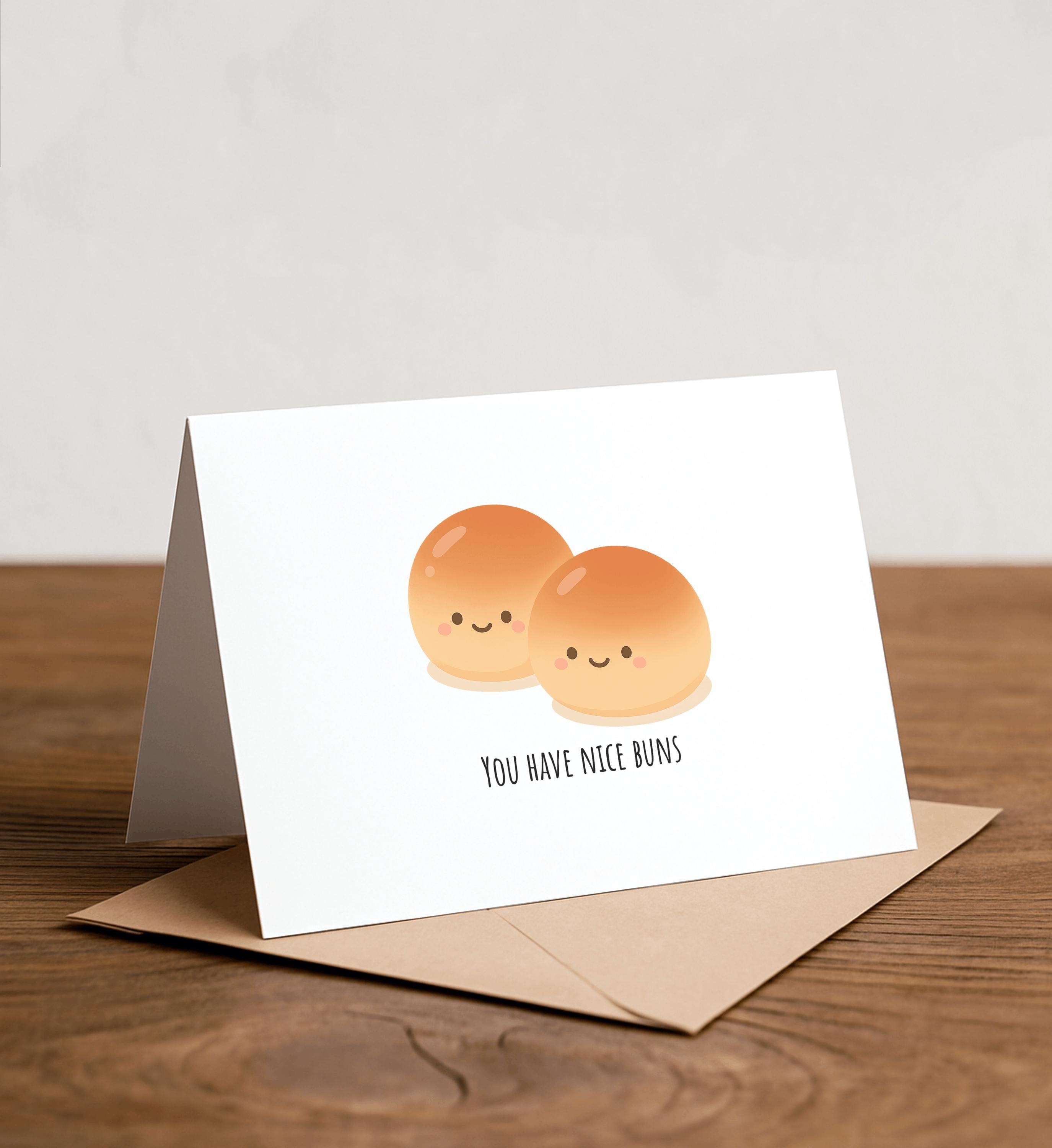 You have nice buns - BUNS Greeting Card, Happy Card, I Love You Card, Foodie card, Birthday Card, Nerdy Pun Card, Punny Greeting Card