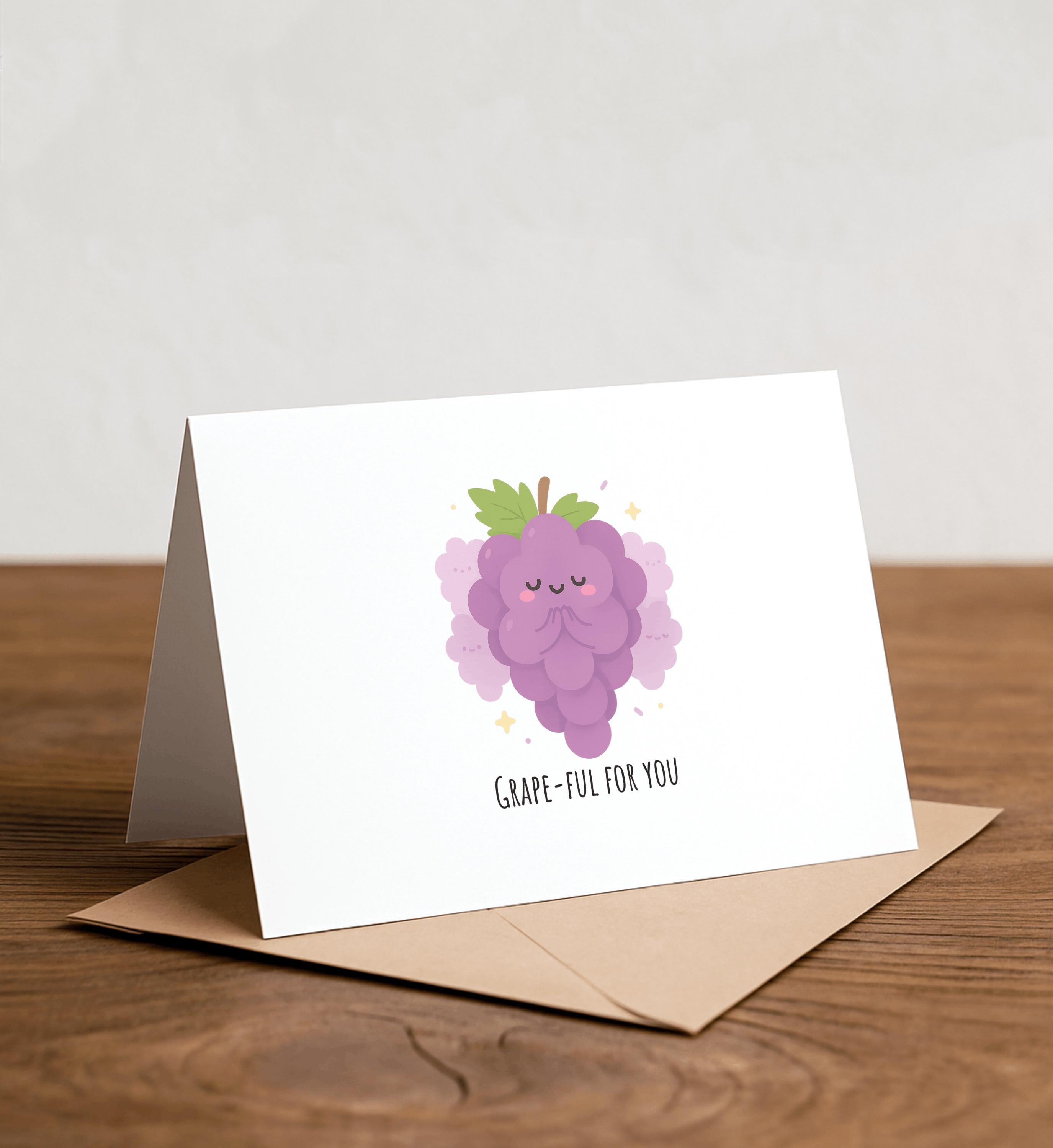 I'm so GRAPEful for you - Grape Greeting Card, Happy Card, I Love You Card, Foodie card, Birthday Card, Nerdy Pun Card, Punny Greeting Card