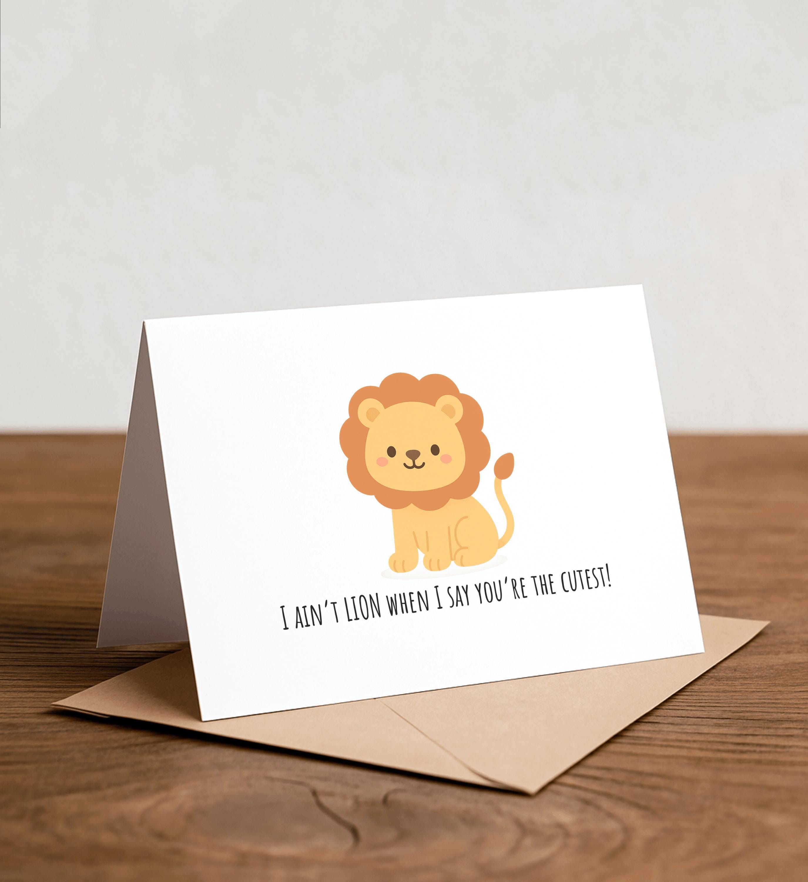 I ain LION - Cheesy Pun Greeting Card, Happy Card, I Love You Card, Foodie card, Birthday Card, Nerdy Pun Card, Punny Greeting Card
