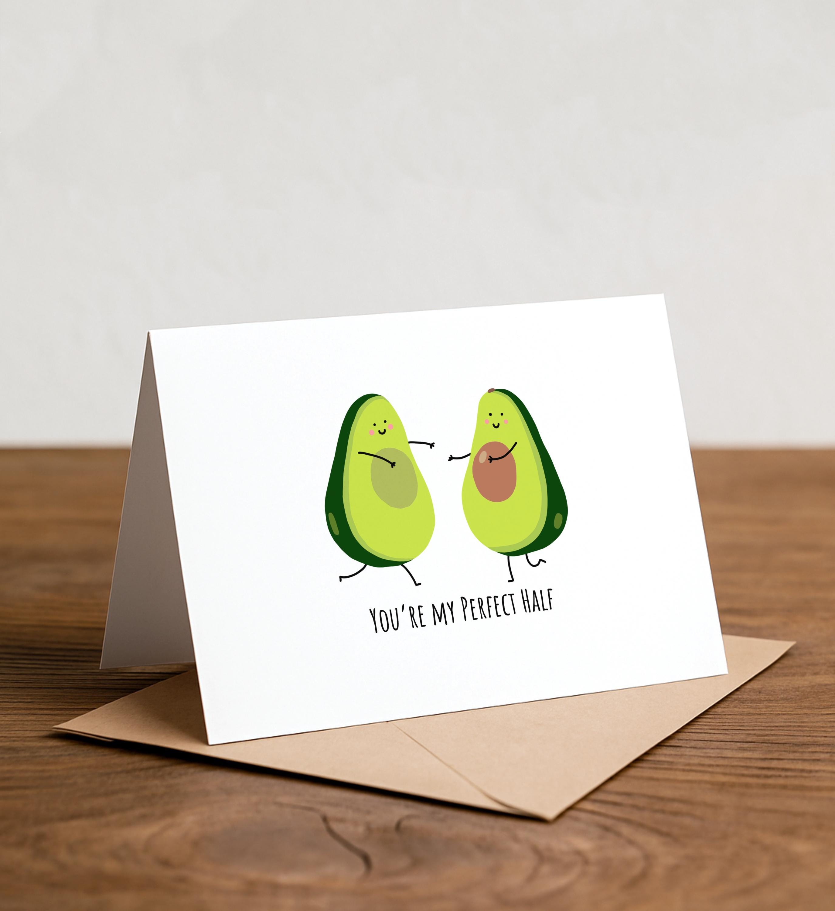 You're my perfect half - Avocado Greeting Card, Happy Card, I Love You Card, Foodie card, Birthday Card, Guacamole Pun Card, Greeting Card