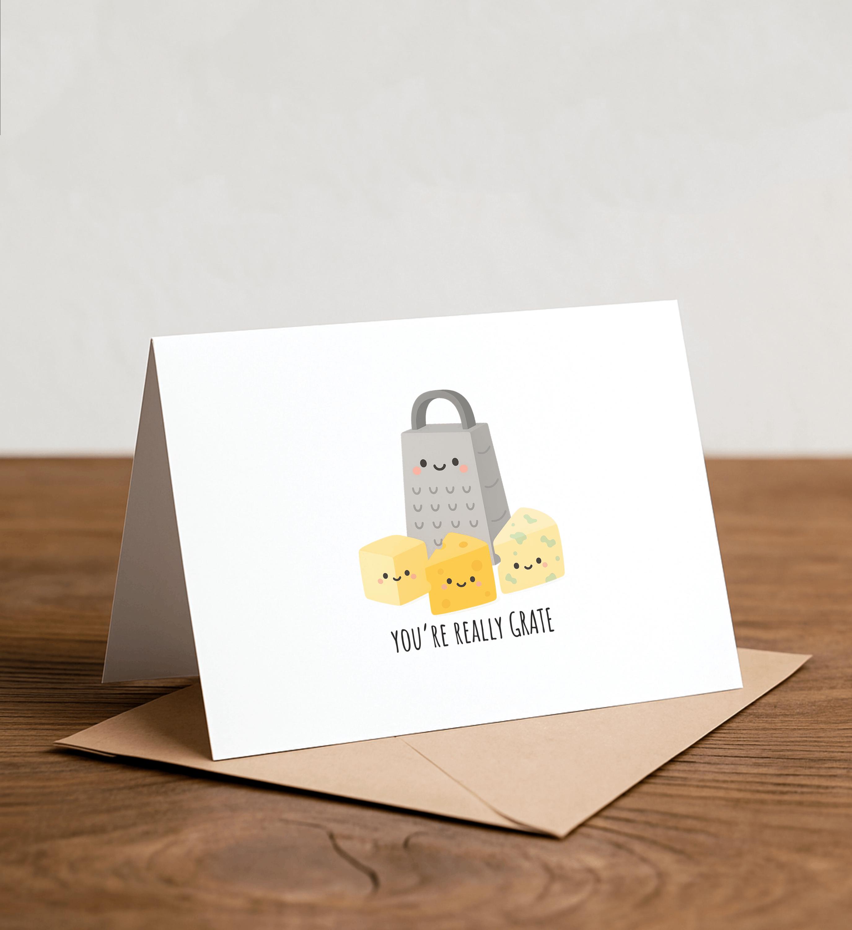 Punny Grater Card: I Think You're Grate - Foodie Love Card