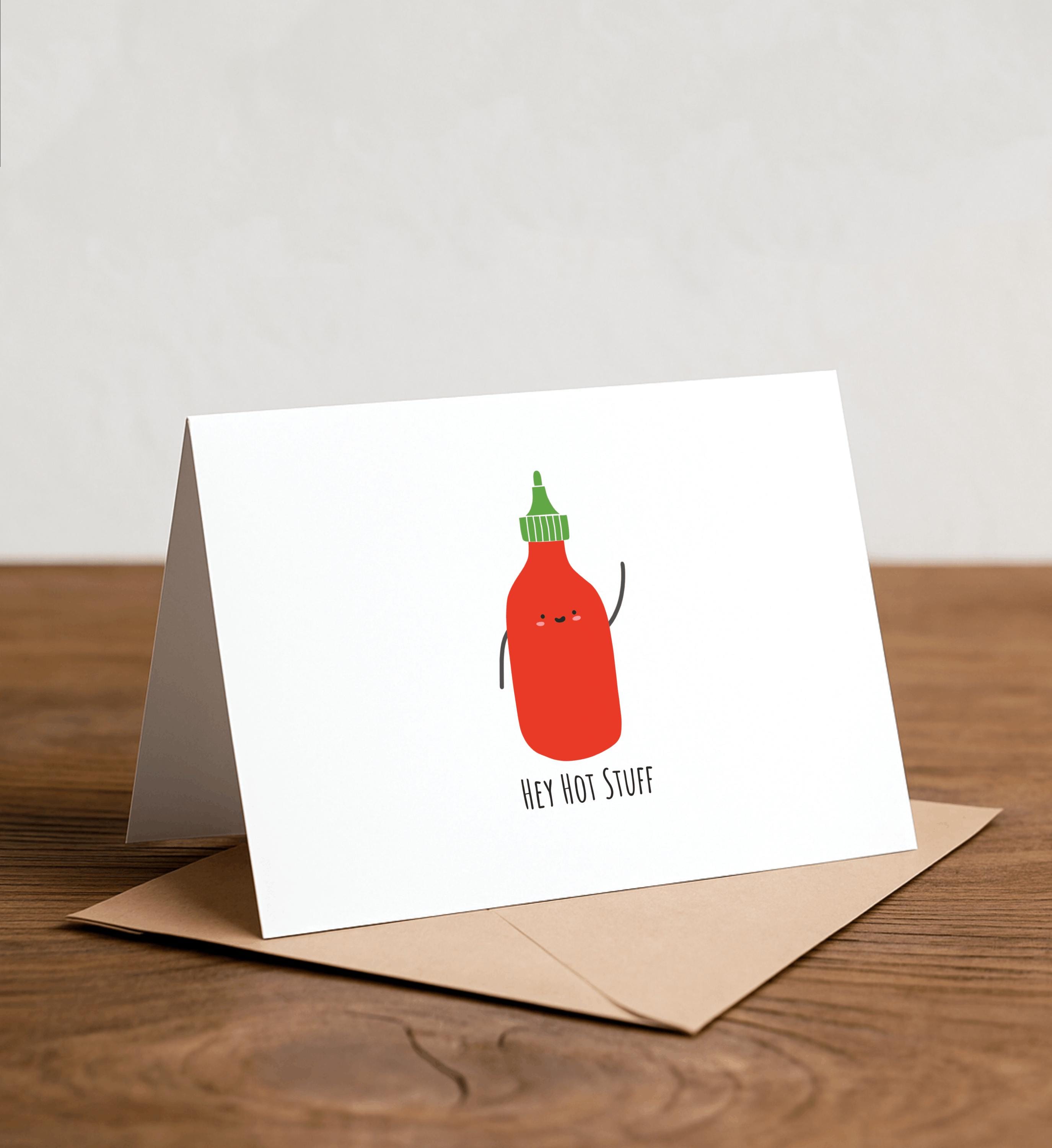 Hey Hot Stuff - Hot Sauce Greeting Card, Happy Card, I Love You Card, Foodie card, Birthday Card, Nerdy Pun Card, Punny Greeting Card