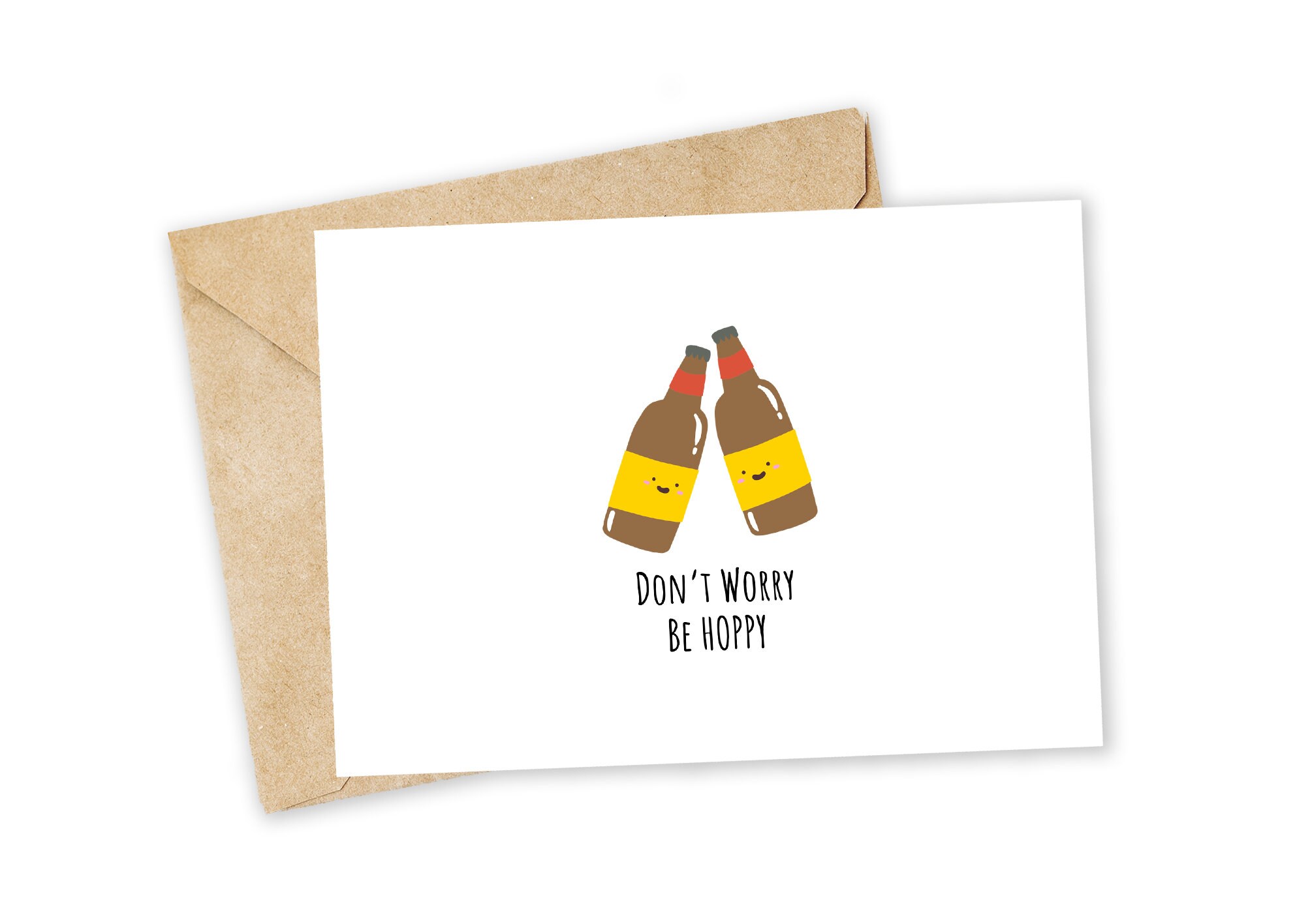 "Don't Worry, Be Hoppy" - Beer Greeting Card, Happy Card, I Love You Card, Foodie card, Birthday Card, Nerdy Pun Card, Punny Greeting Card