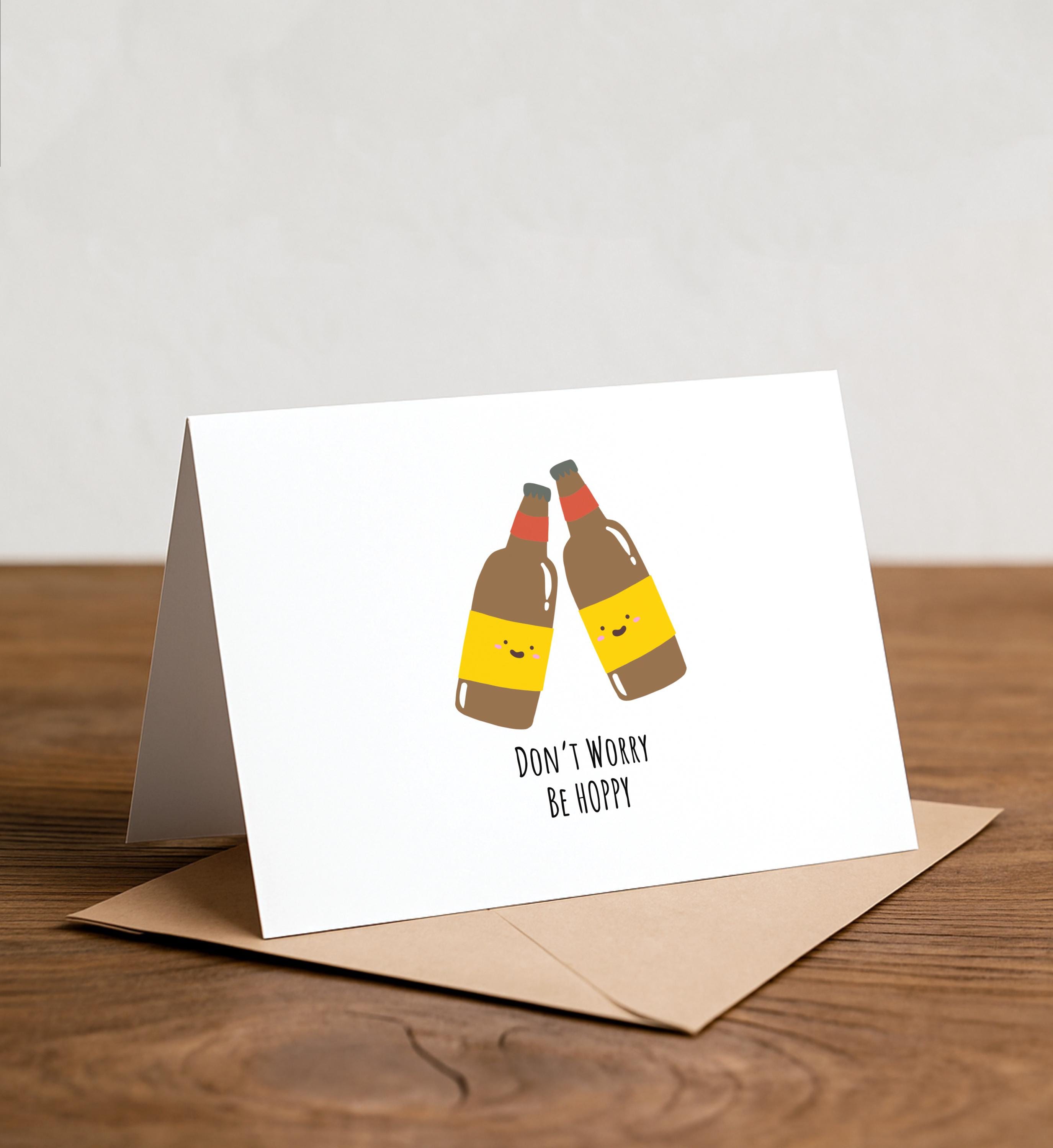Beer Pun Greeting Card: Don't Worry, Be Hoppy