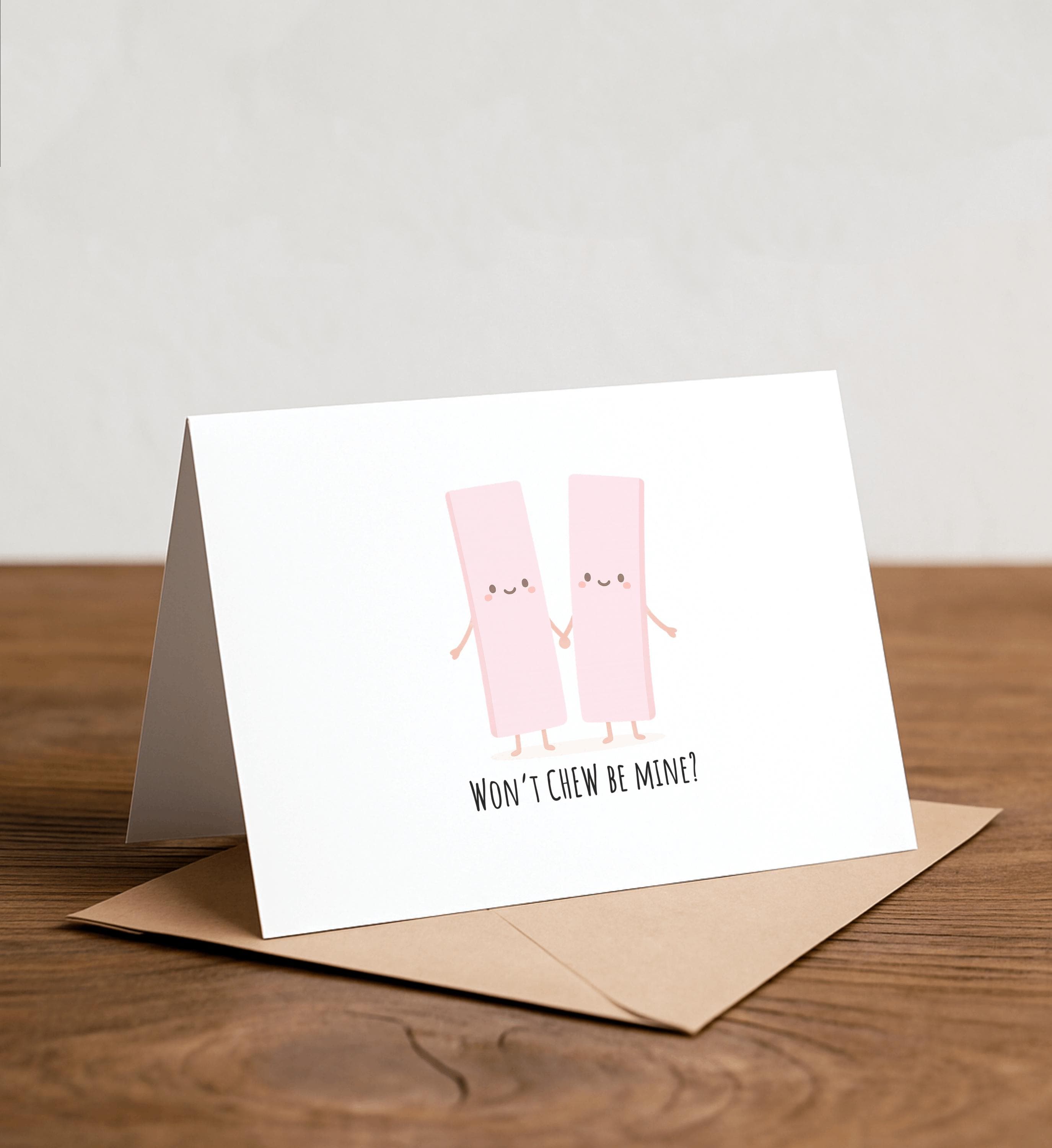 Won't CHEW be mine? - Gum Greeting Card, Happy Card, I Love You Card, Foodie card, Birthday Card, Nerdy Pun Card, Punny Greeting Card