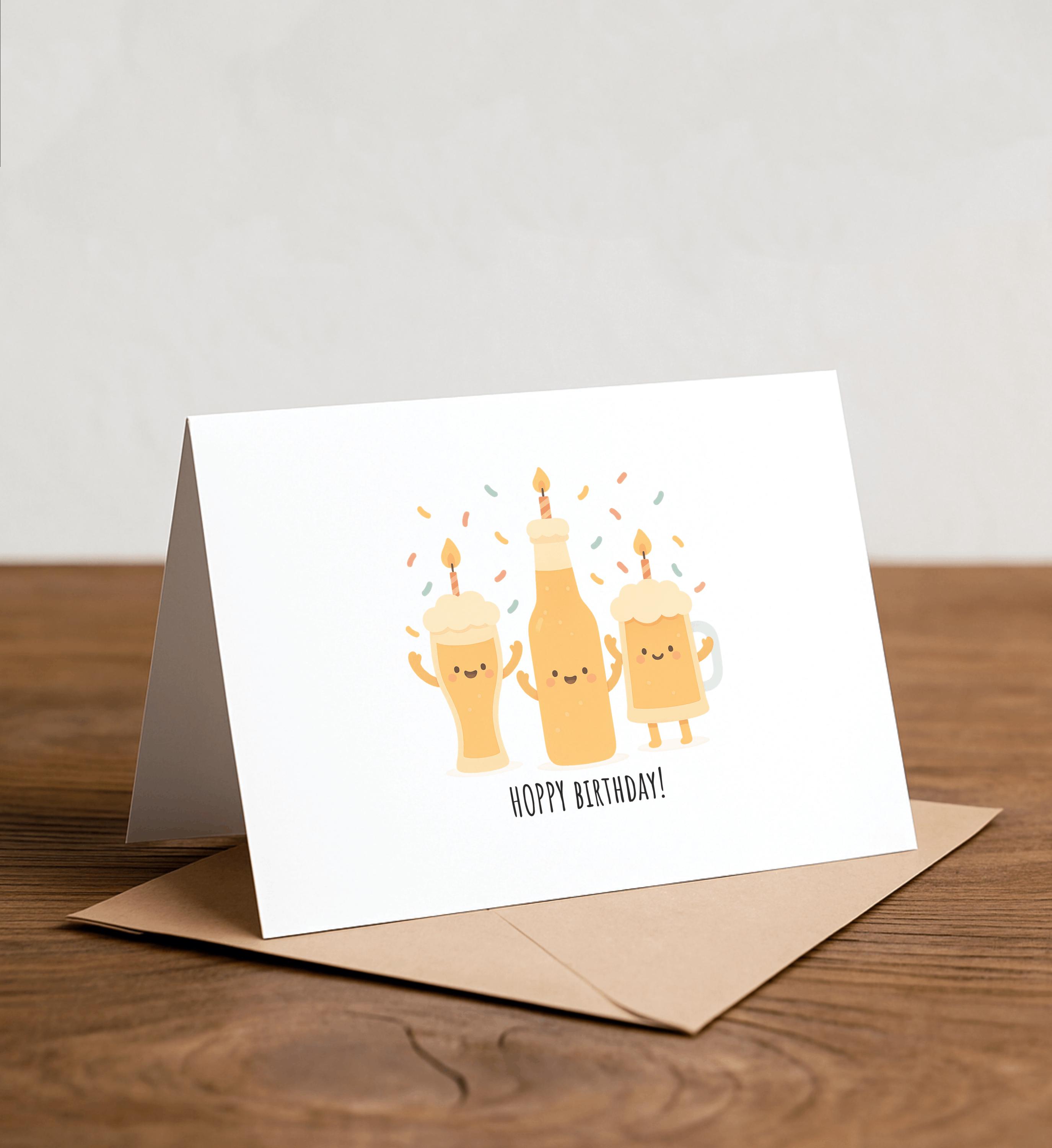 Funny Beer Birthday Card: Hoppy Pun Handmade Greeting Card