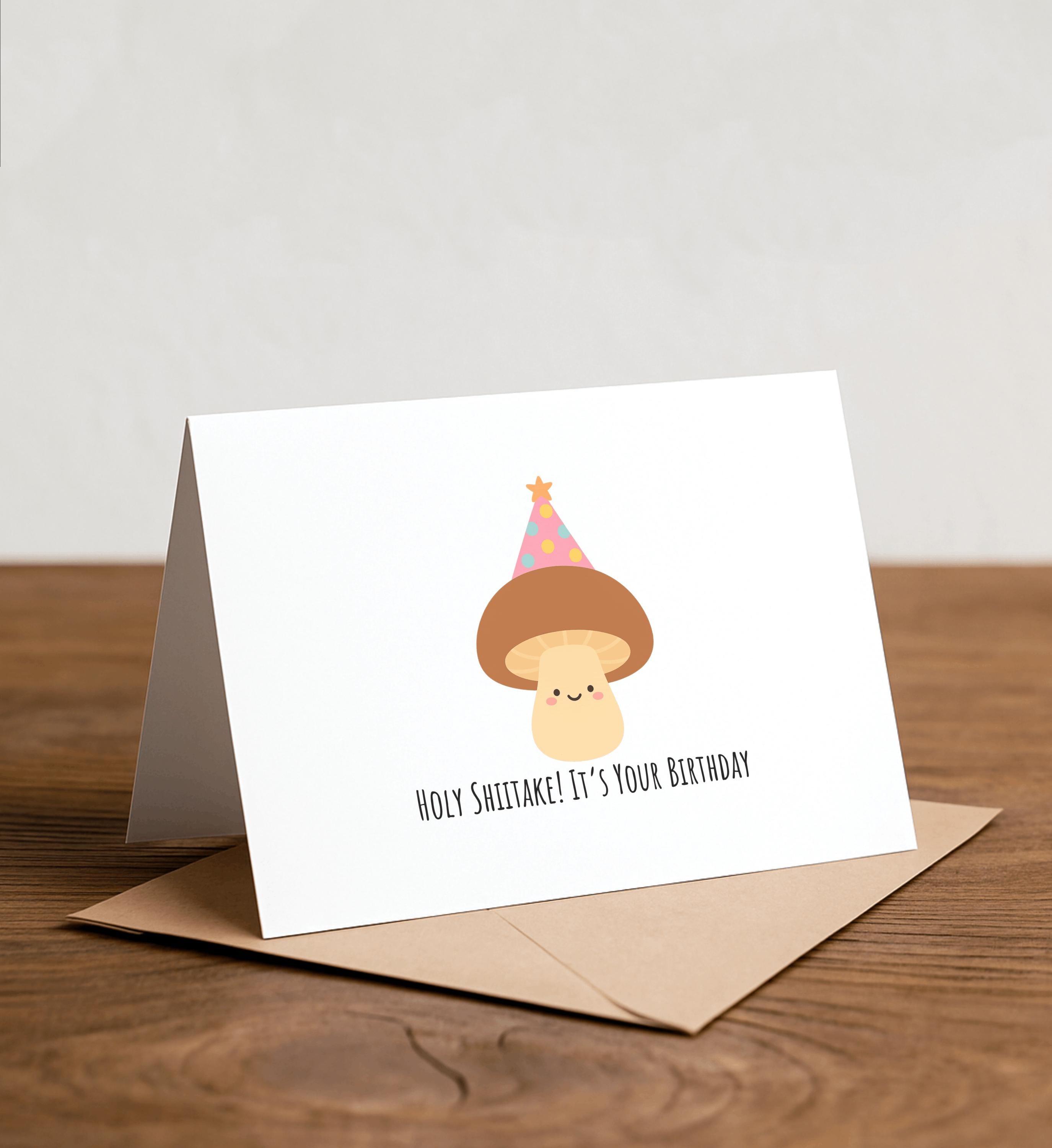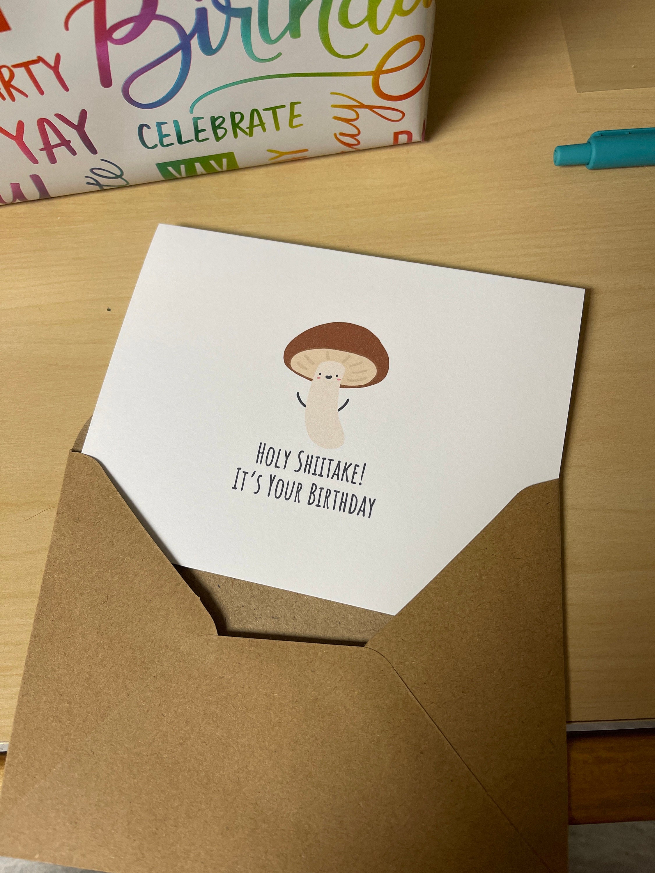 Holy Shiitake! - Funny Birthday Card, Cute Card, Handmade Card, Punny Greeting Card, Joke Birthday, Mushroom, Punny