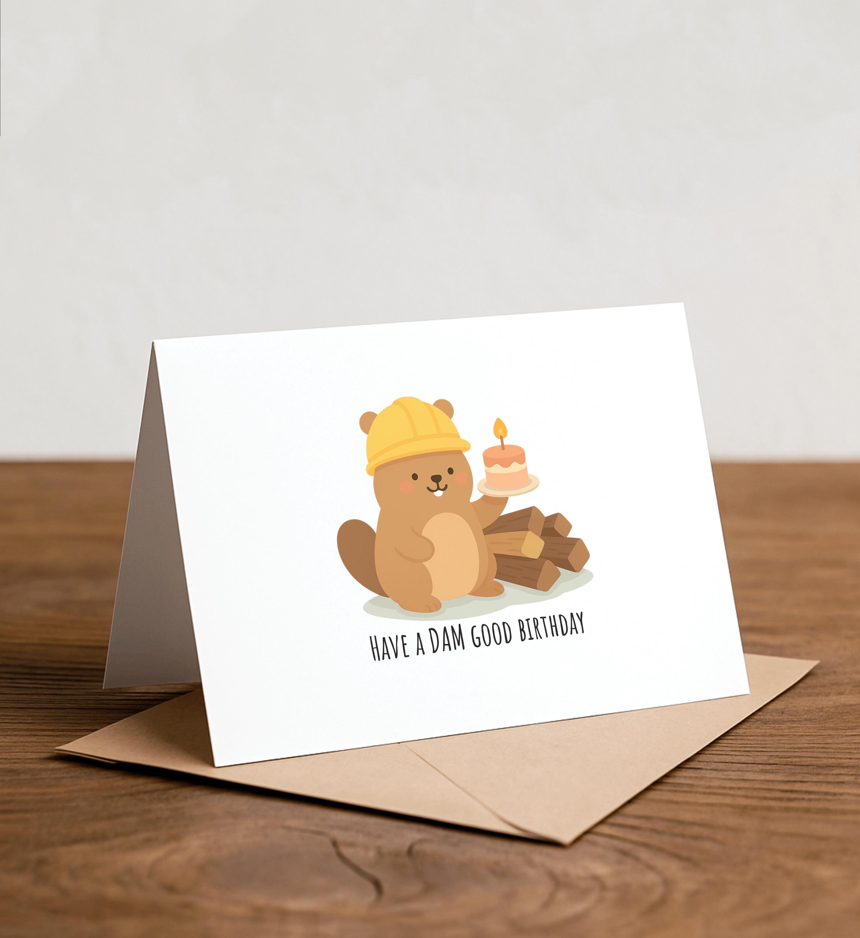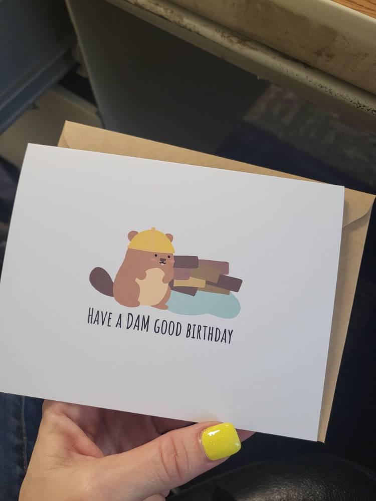 Have a DAM good birthday - Funny Birthday Card, Cute Beaver Card, Punny card, Handmade Card, Punny Greeting Card, Animal, Birthday