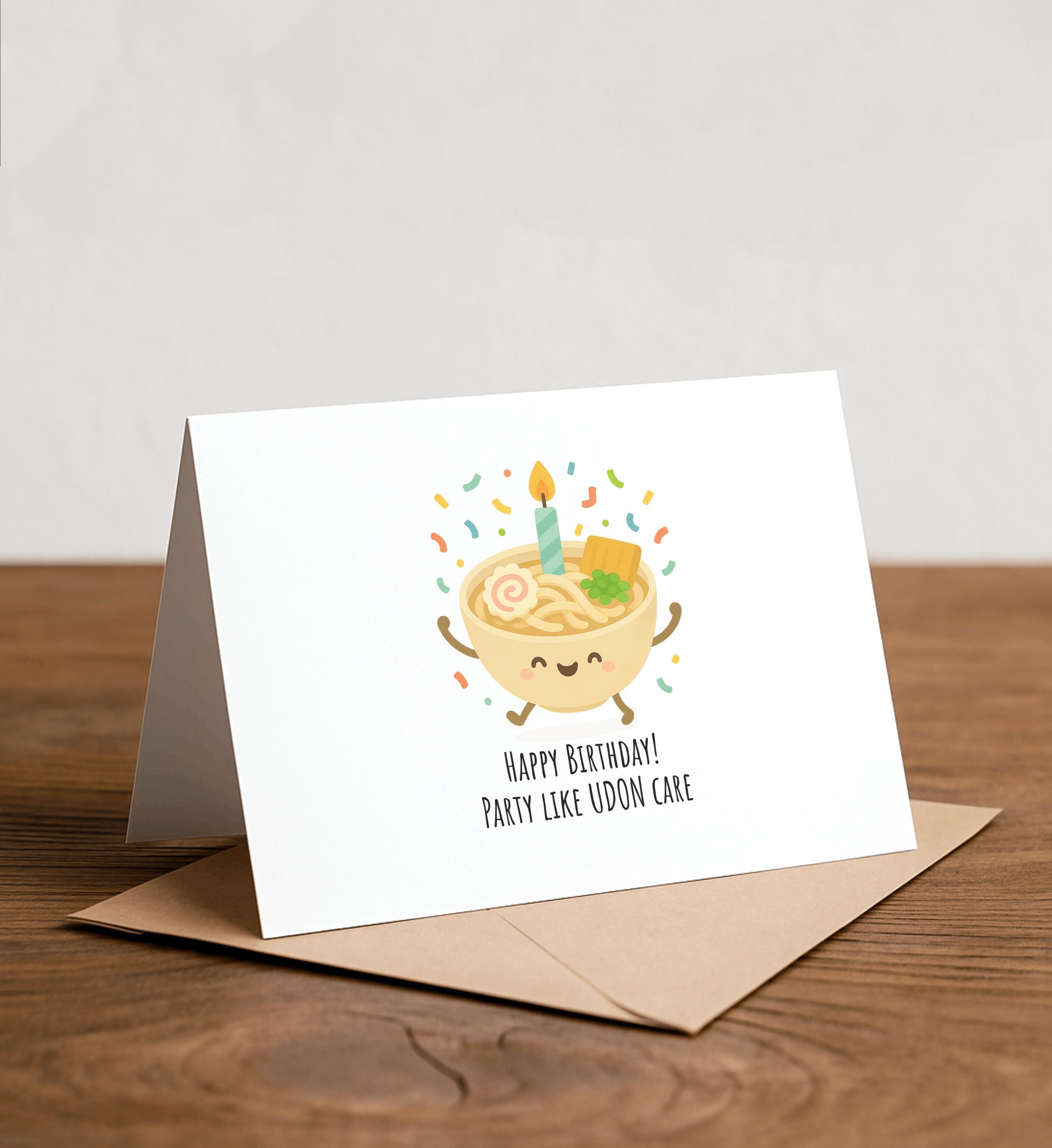 Party like UDON care - Funny Birthday Card, Udon Card, Handmade Card, Punny Greeting Card, Joke Card, Gag Gift, Pun Birthday, Cute Birthday