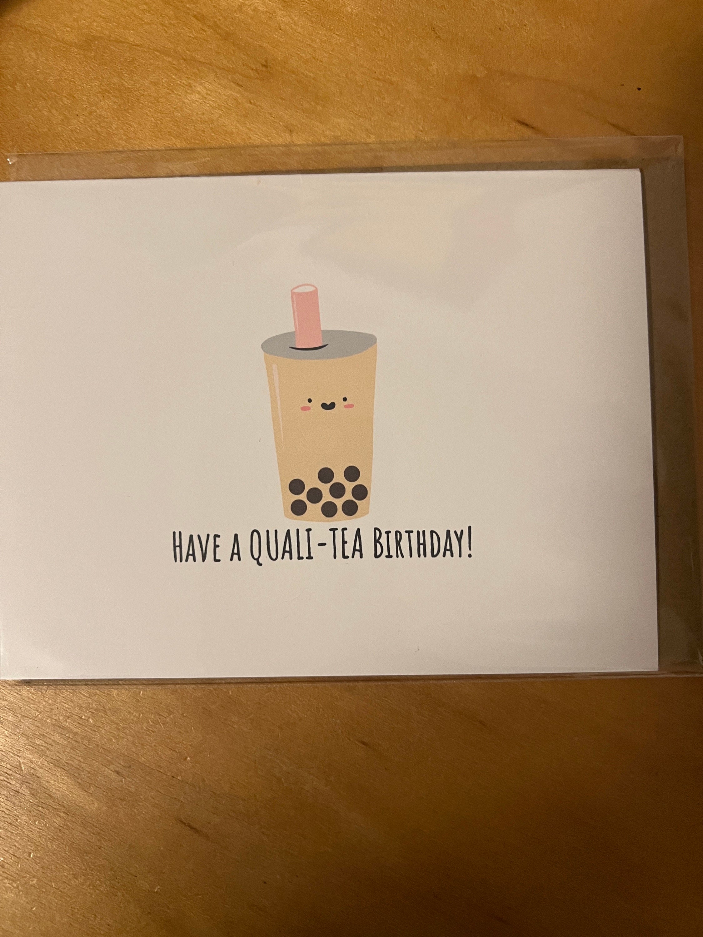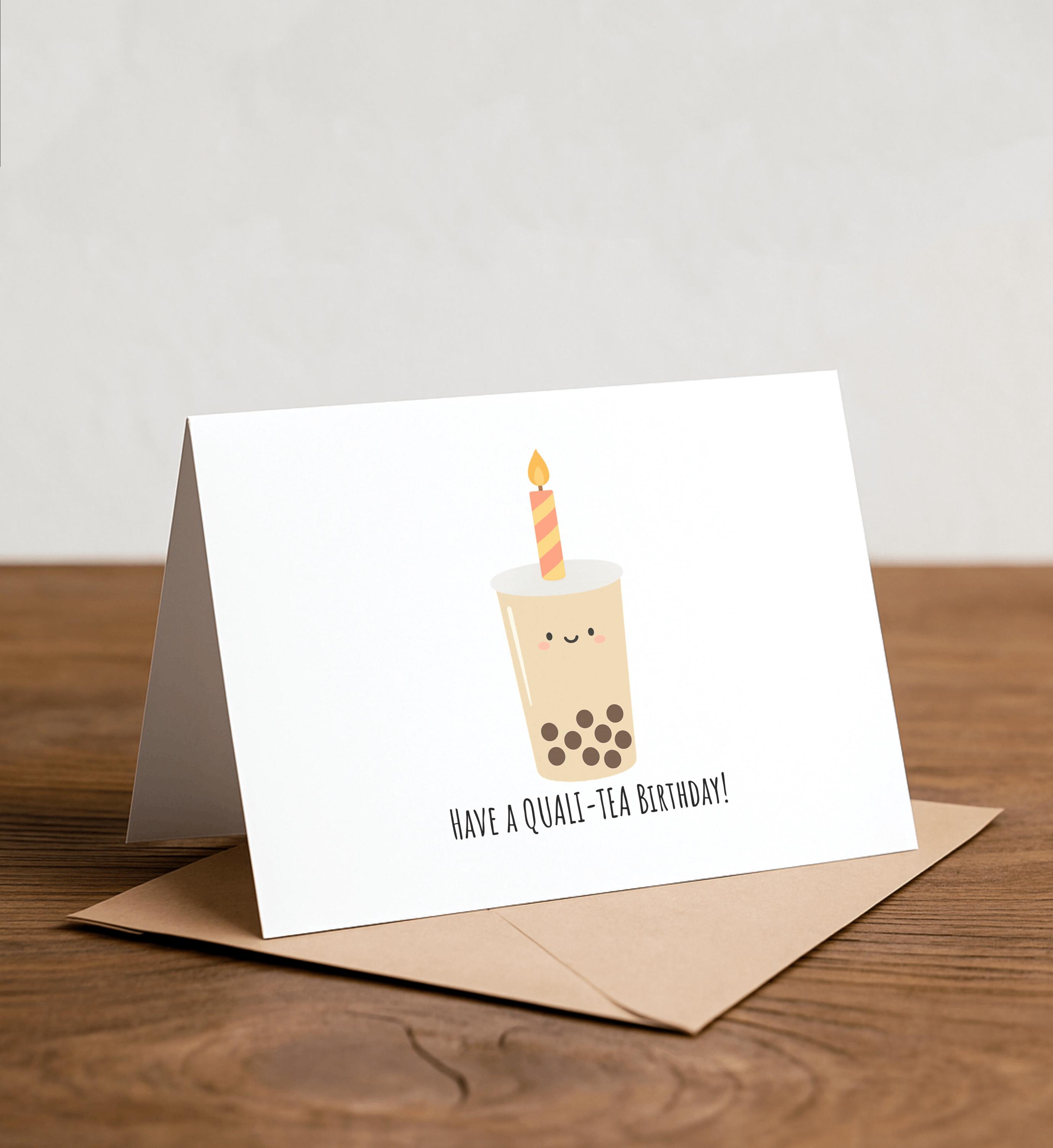 Have a Quali-TEA Birthday - Funny Birthday Card, Cute Card, Handmade Card, Punny Greeting Card, Boba Card, Joke Birthday, Birthday Pun, Bubble Tea