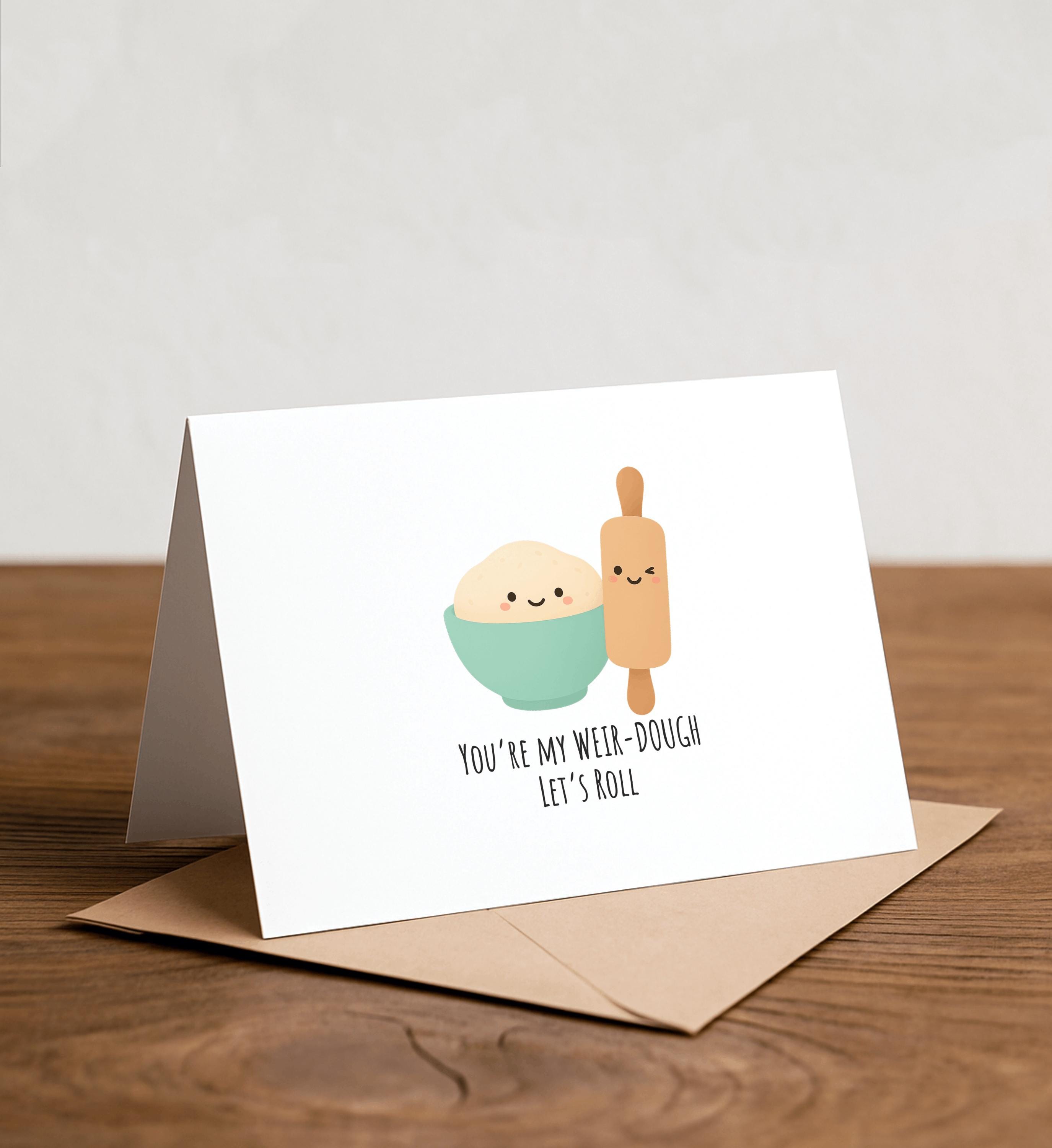 You're my WEIR-DOUGH, Let's ROLL - funny valentine's, love card, boyfriend, girlfriend, partner, husband, wife