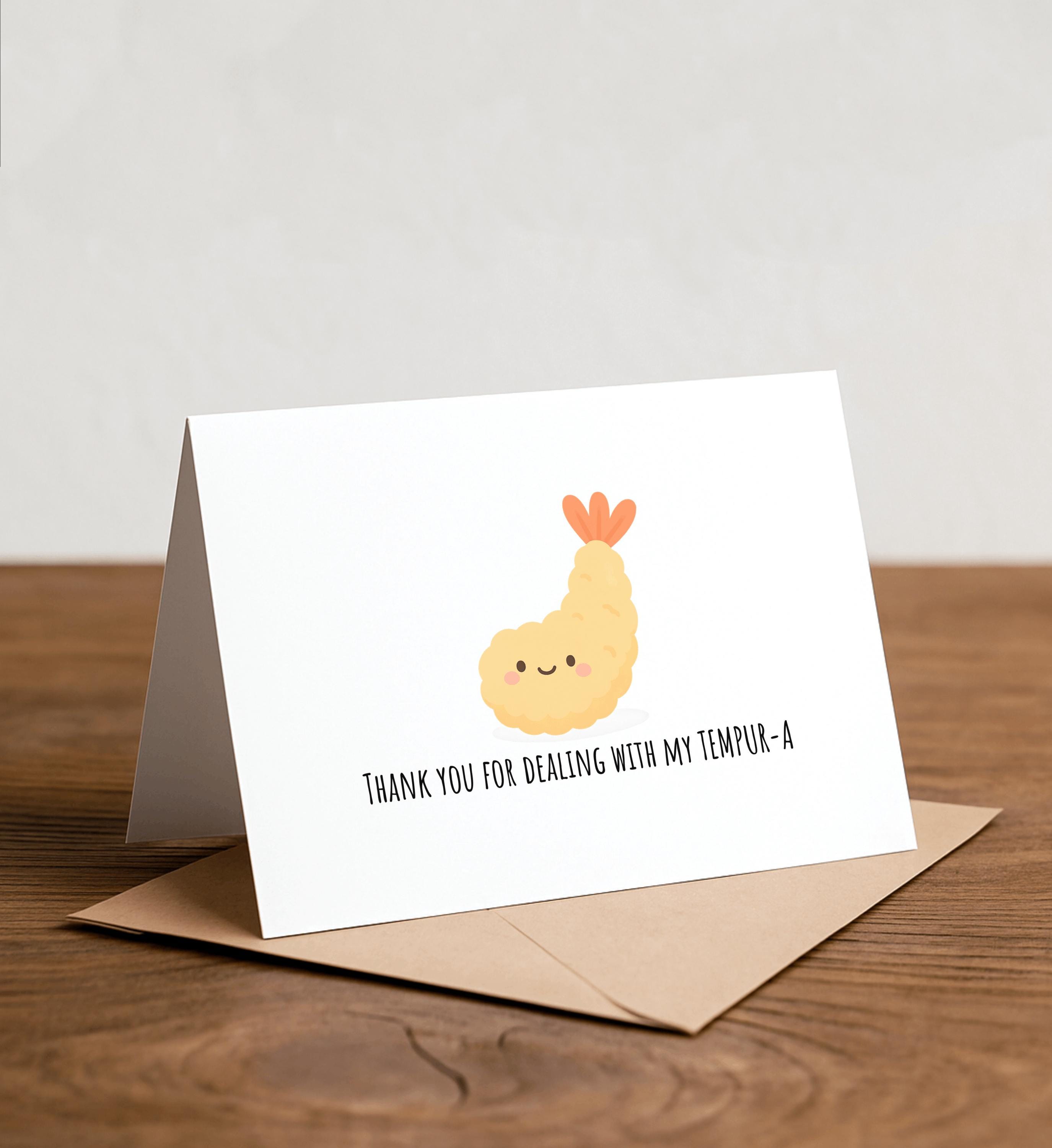 Thank you for dealing with my TEMPUR-A - Food Greeting Card, Note Card, Funny valentine, love Card, Thank you card, tempura, sushi, thanks