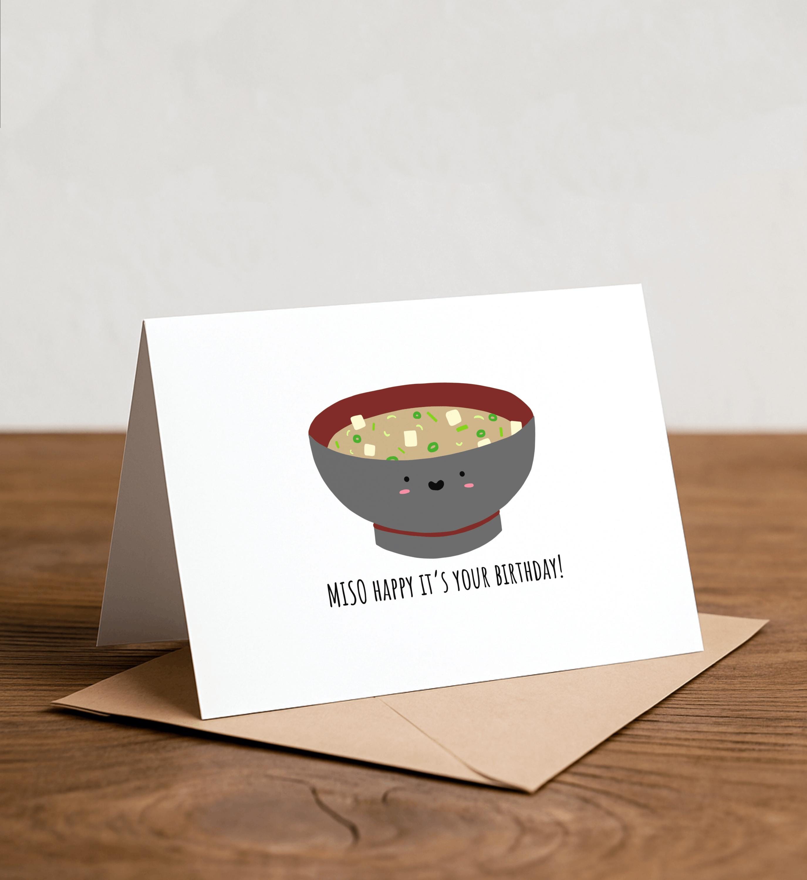 MISO happy it's your birthday - Funny Birthday Card, Cute Card, Handmade Card, Punny Greeting Card, Joke Birthday, Birthday Pun, miso, soup