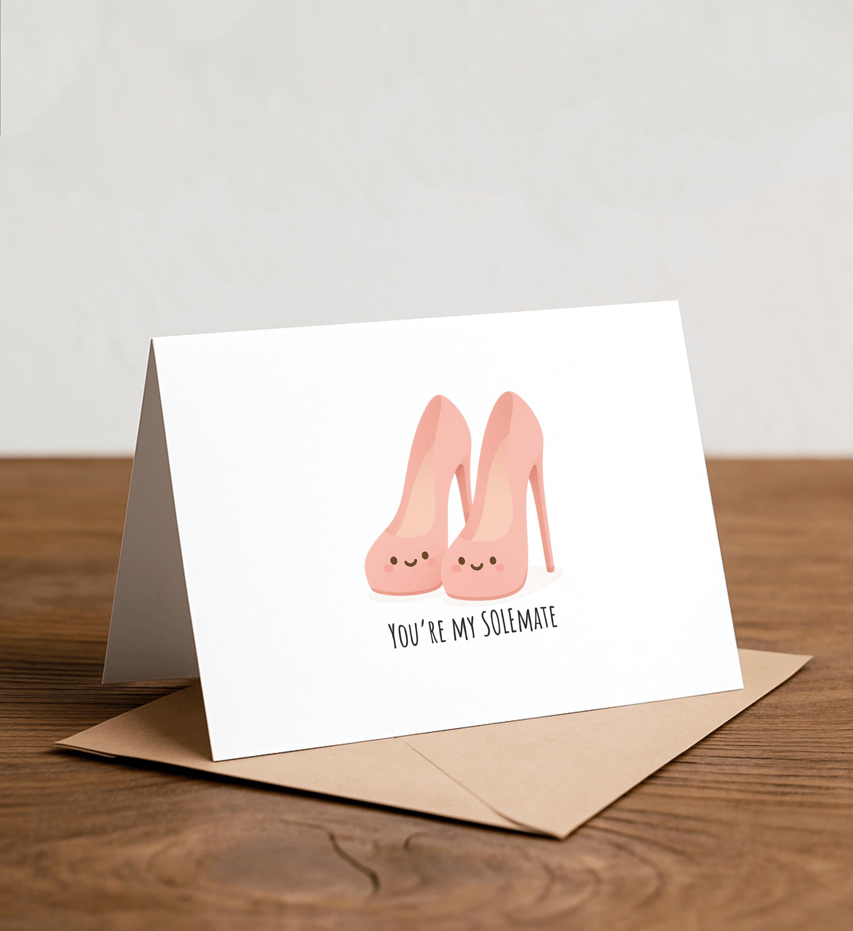 You're my SOLEmate - heels, stilettos, soulmate, funny valentine's, love card, boyfriend, girlfriend, partner, husband, wife
