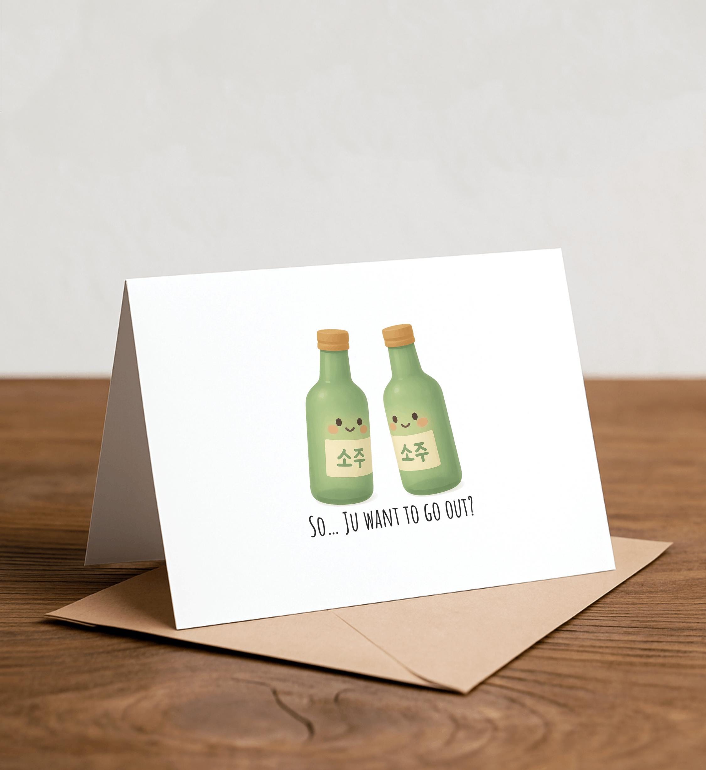 So... ju wanna go out? - Soju Greeting Card, Note Card, Funny valentine, Thank you card, dad joke, love card, pun, soju, korean, kpop
