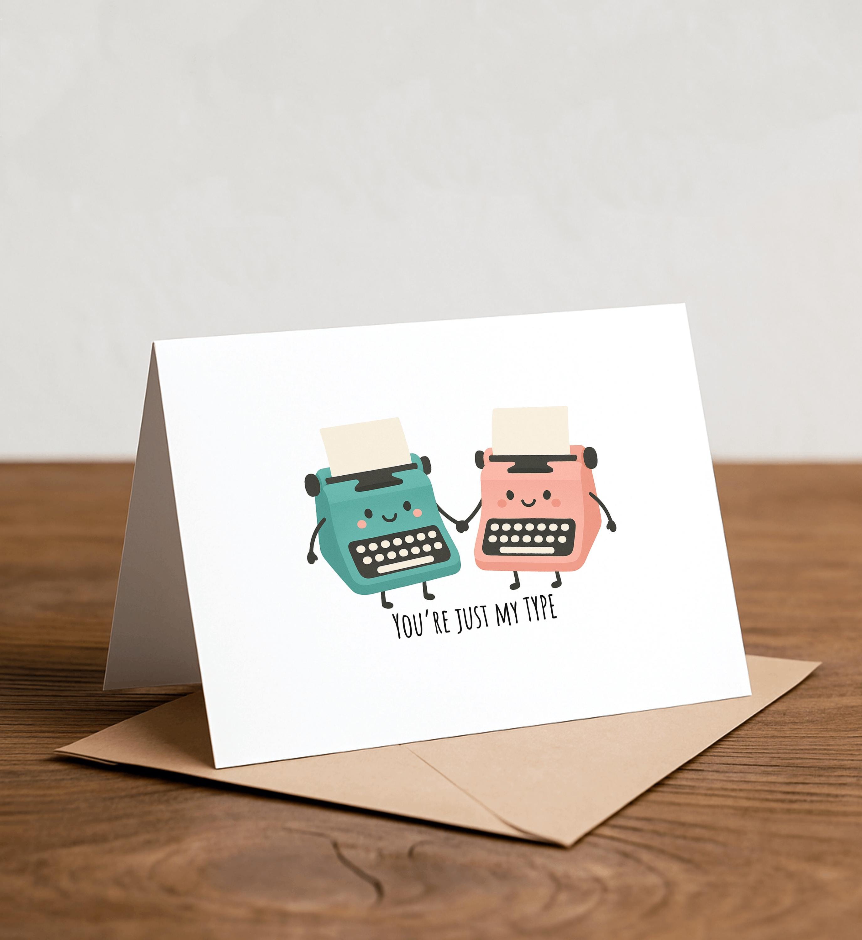 You're just my TYPE - Typewriter Greeting Card, Vintage Card, Funny valentine, Funny card, love Card, Happy birthday, Thank you card