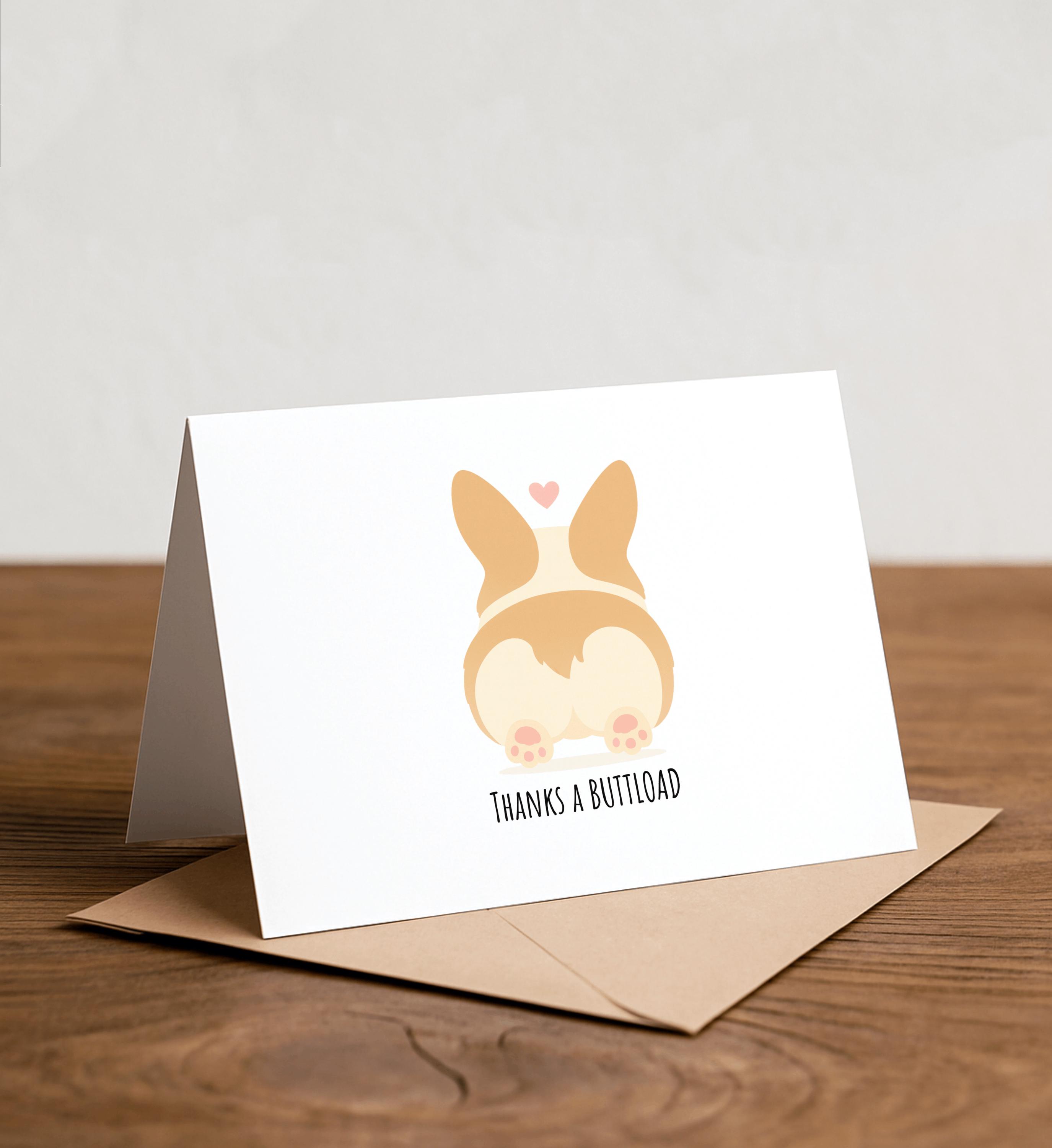 Thanks a BUTTLOAD - Corgi Greeting Card, Note Card, Funny valentine, Funny card, love Card, Thank you card, corgi card, butt, pun