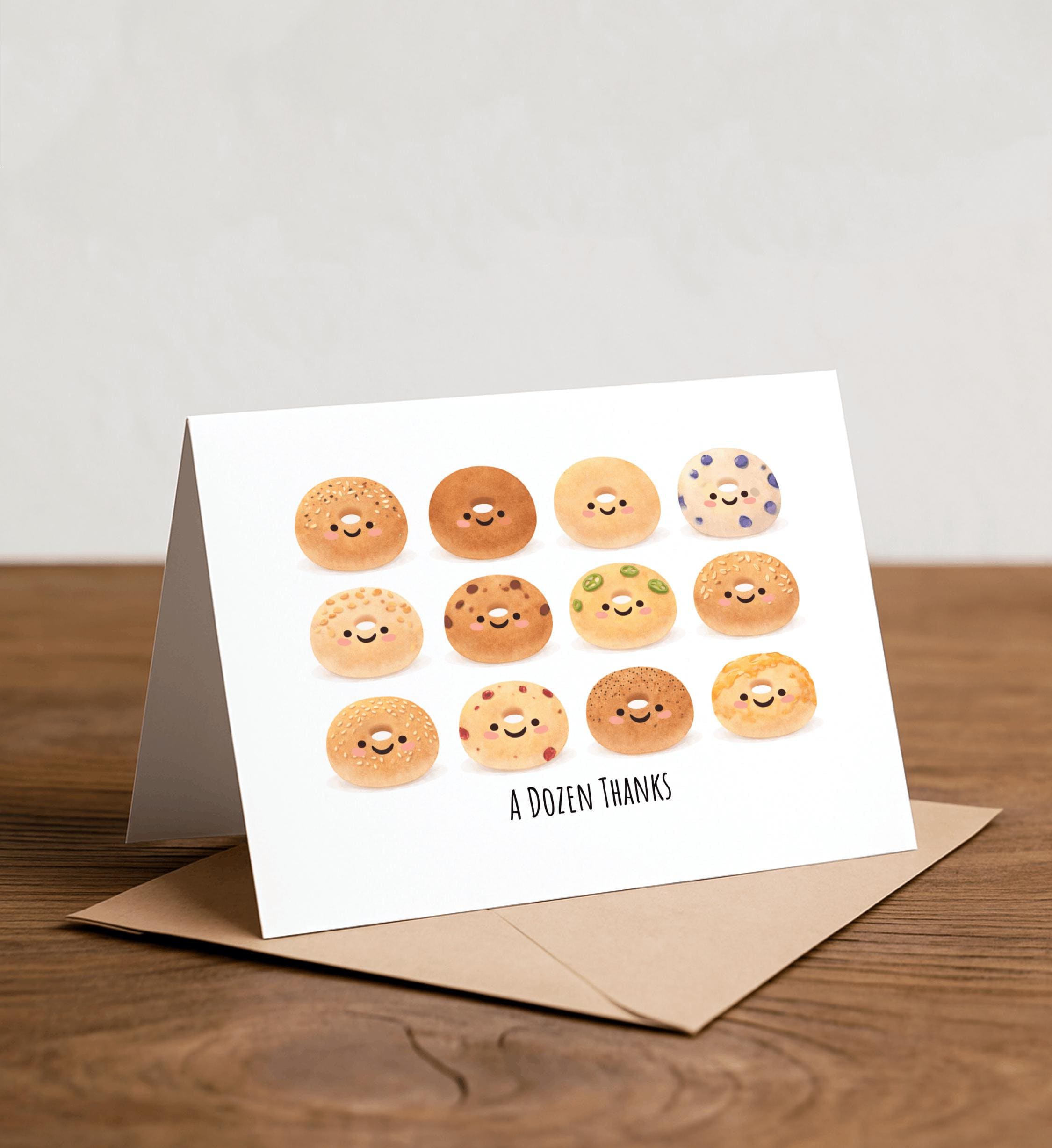 A DOZEN Thanks - Bagel Greeting Card, Note Card, Funny valentine, Funny card, love Card, Thank you card, Dozen Bagels, blueberry, onion