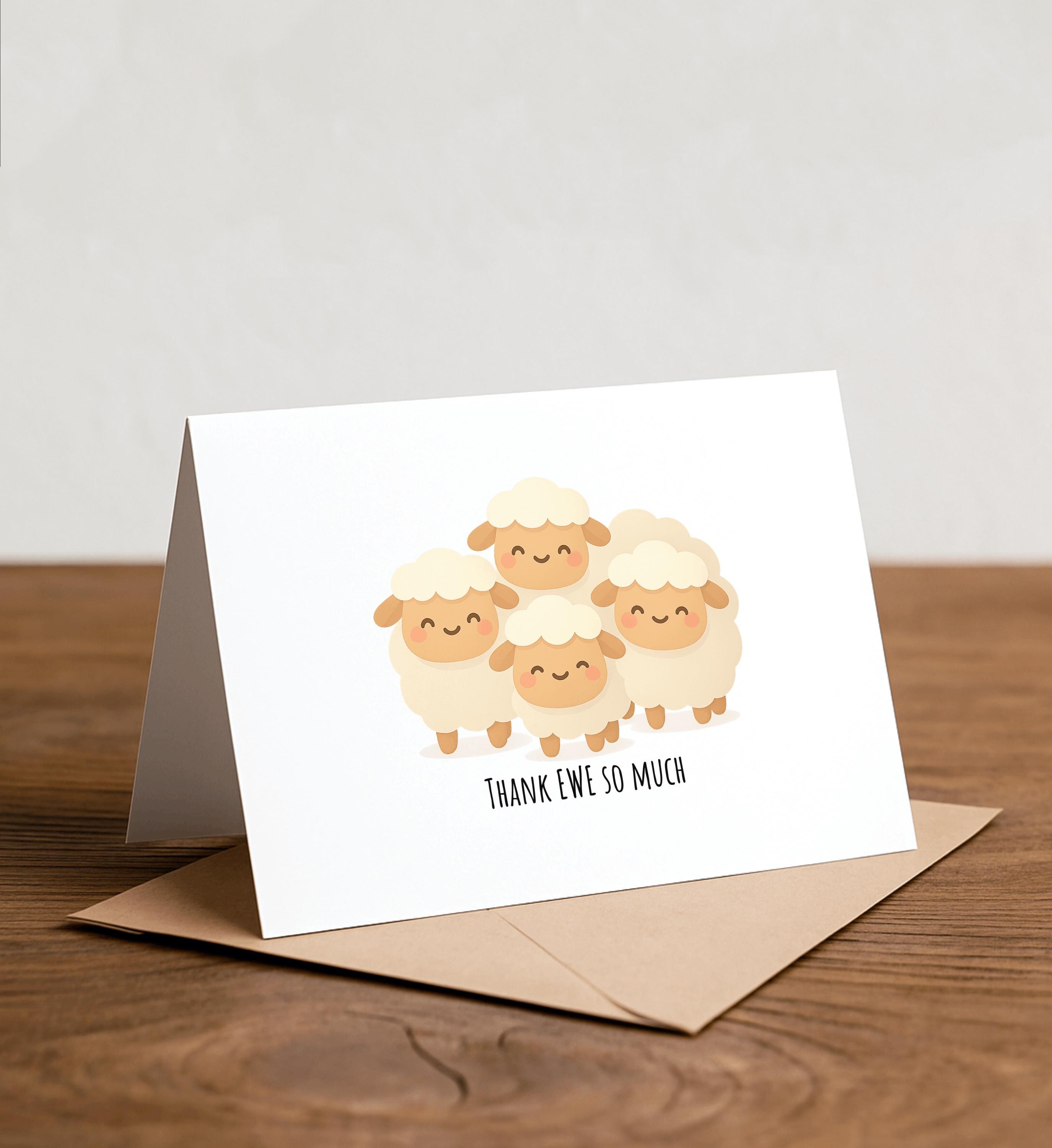 Funny Sheep Thank You Card - Handmade Note Card