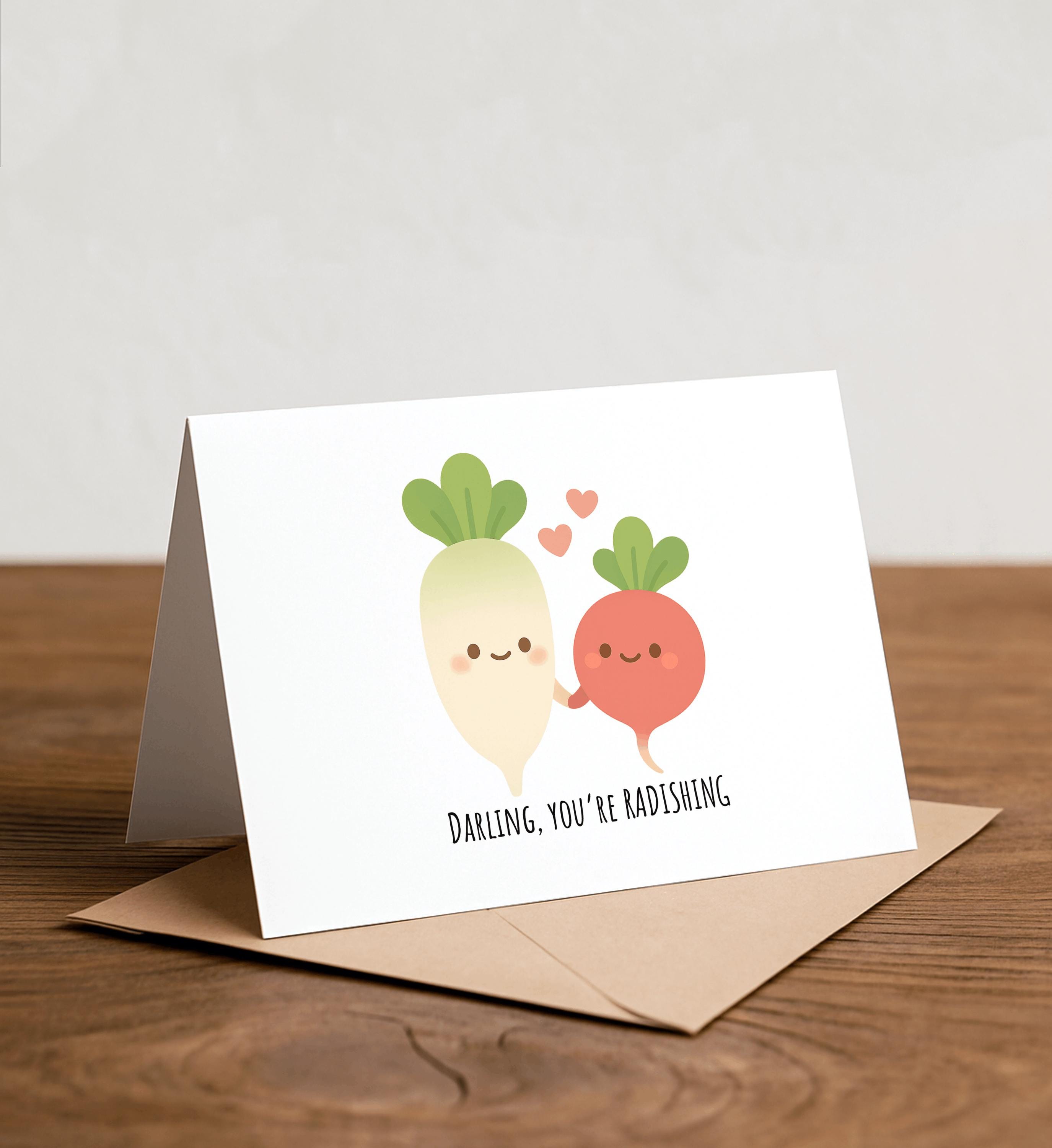 DARLING, You're RADISHING - Radish Greeting Card, Note Card, Funny valentine, Love Card, Thank you card, Pun, Radish, Vegetable, ravishing