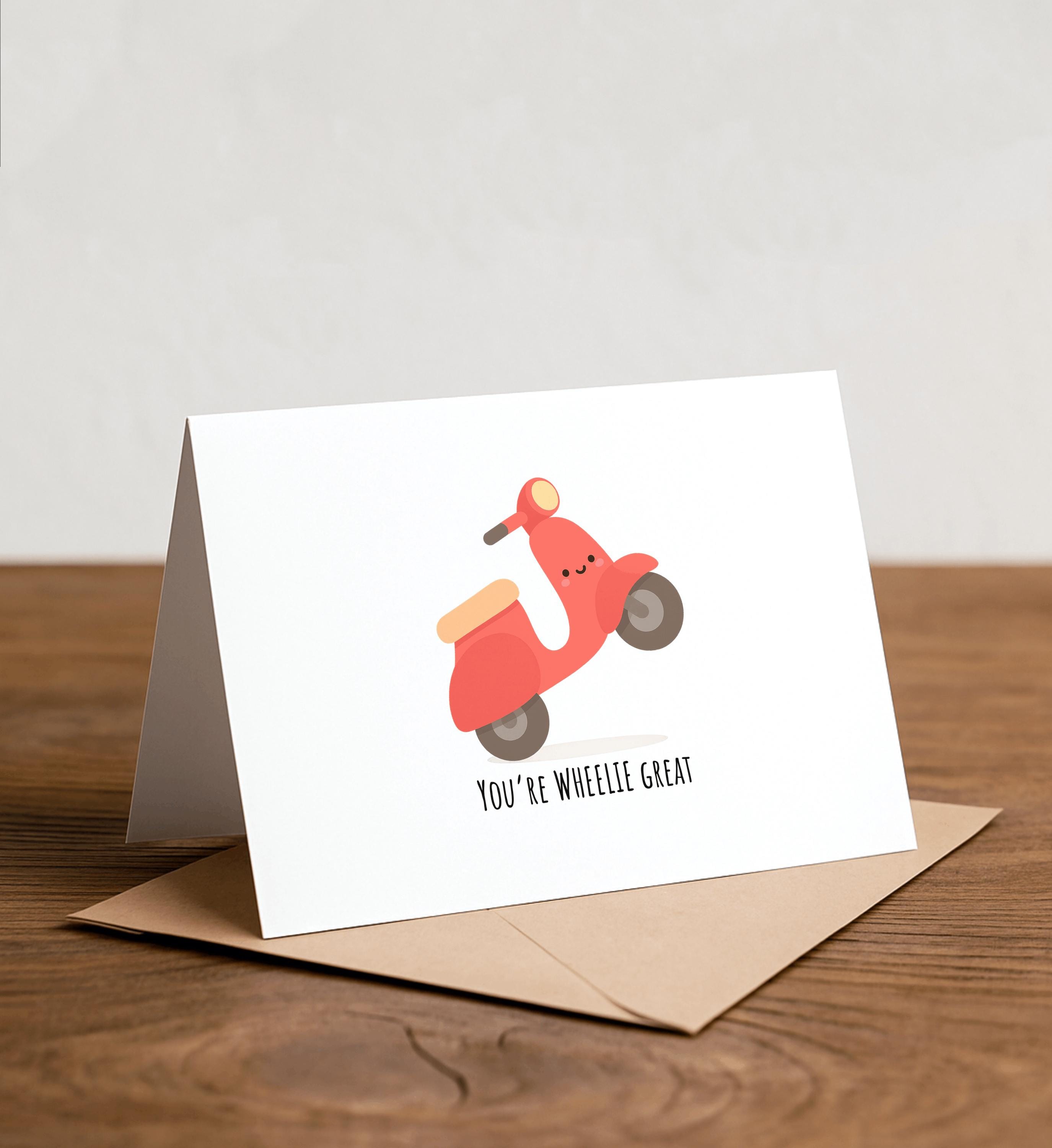 You're WHEELIE great - Vespa Greeting Card, Note Card, Funny valentine, Thank you card, dad joke, vespa, scooter, wheelie, motorcycle
