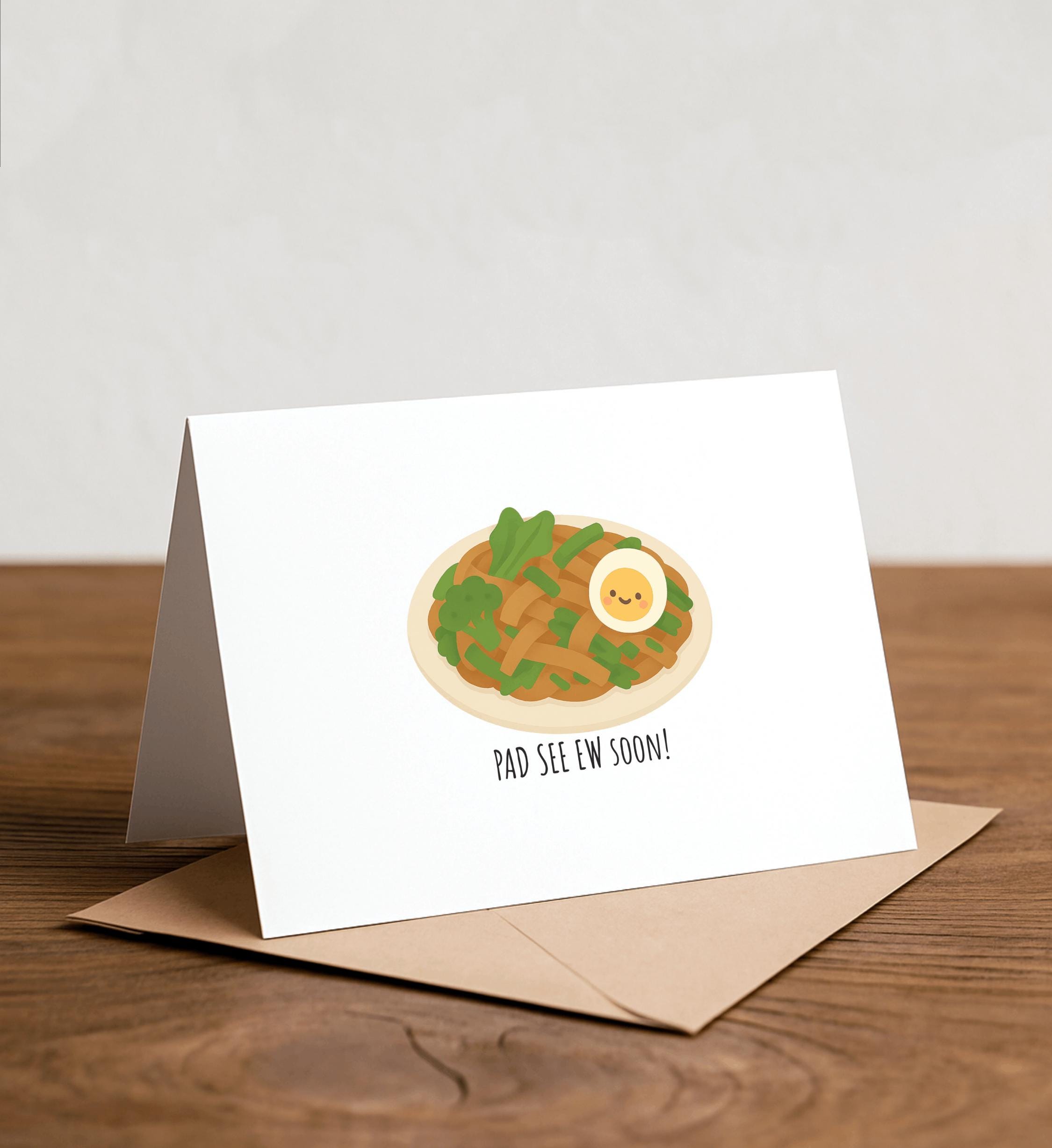 Pad See Ew Soon! - Pad See Ew Greeting Card, Valentine's Day Card, Handmade Card, Foodie card, See you soon, LDR, long distance, friends