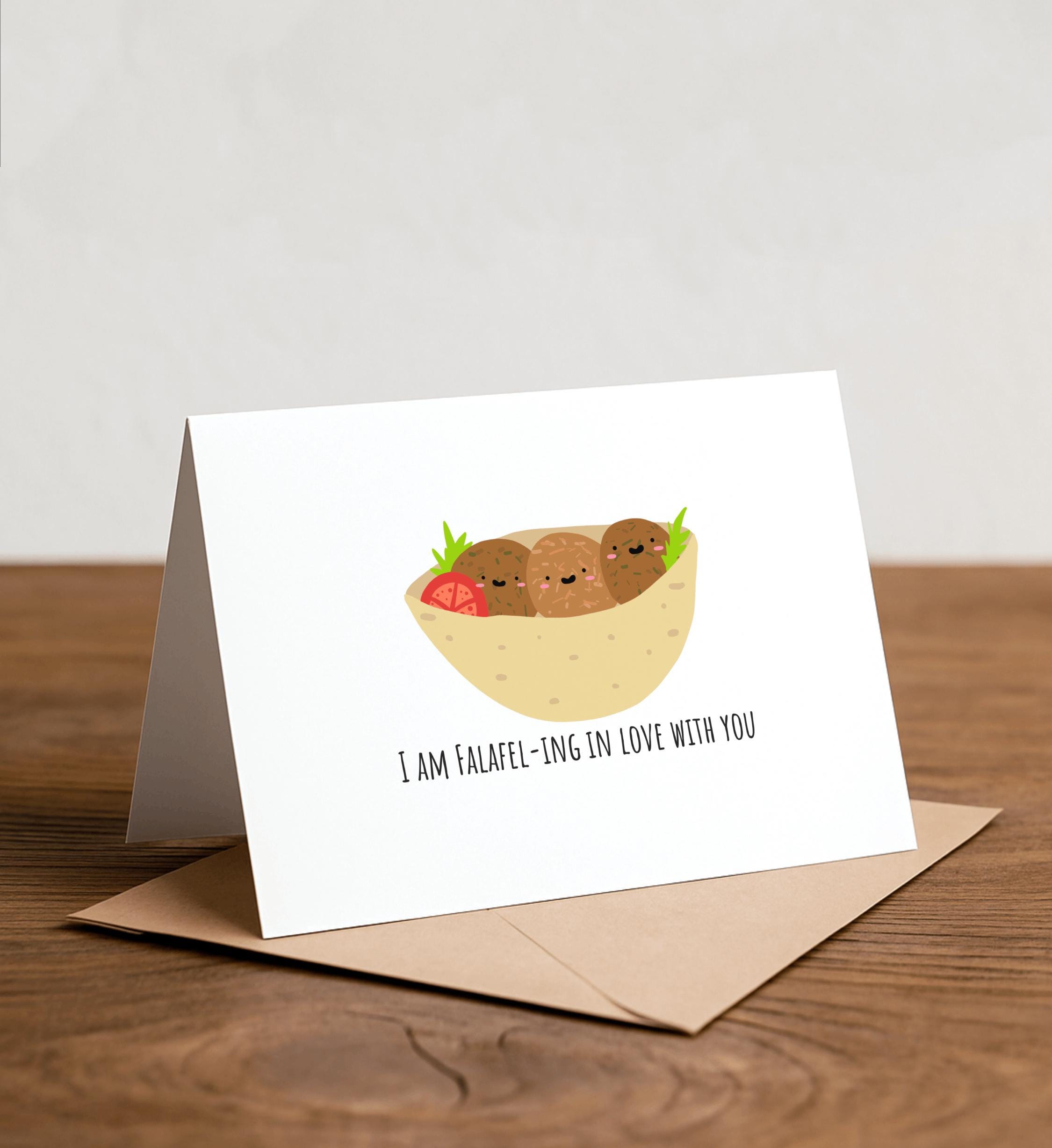 Falafel-ing in love with you - Falafel Greeting Card, Valentine's Day Card, Handmade Card, Foodie card, falafel, greek, mediterranean