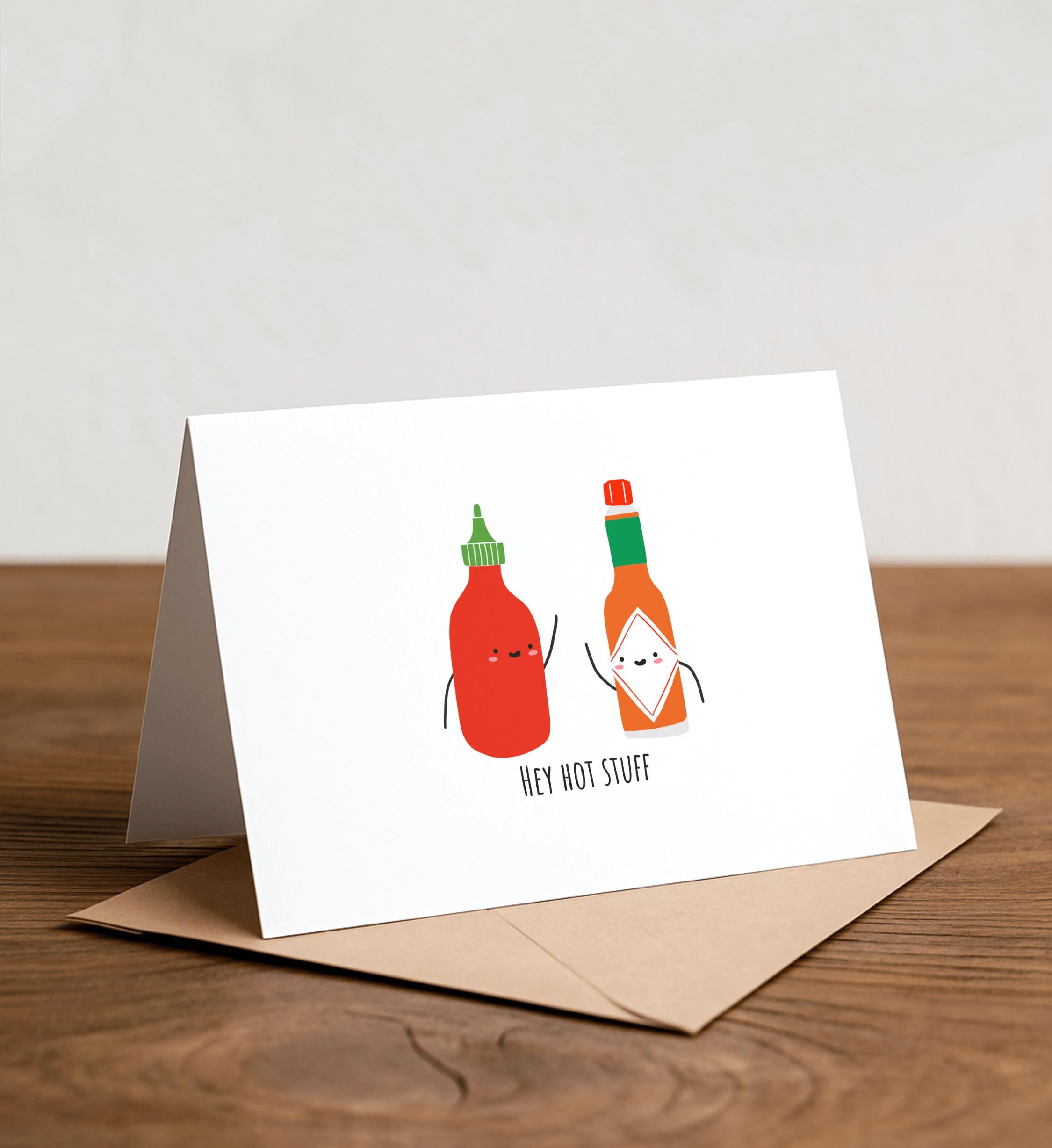 Hey Hot Stuff! - Hot Sauce Greeting Card, Valentine's Day Card, Handmade Card, Foodie card, Tabasco, Sriracha, Hot Sauce, Pun
