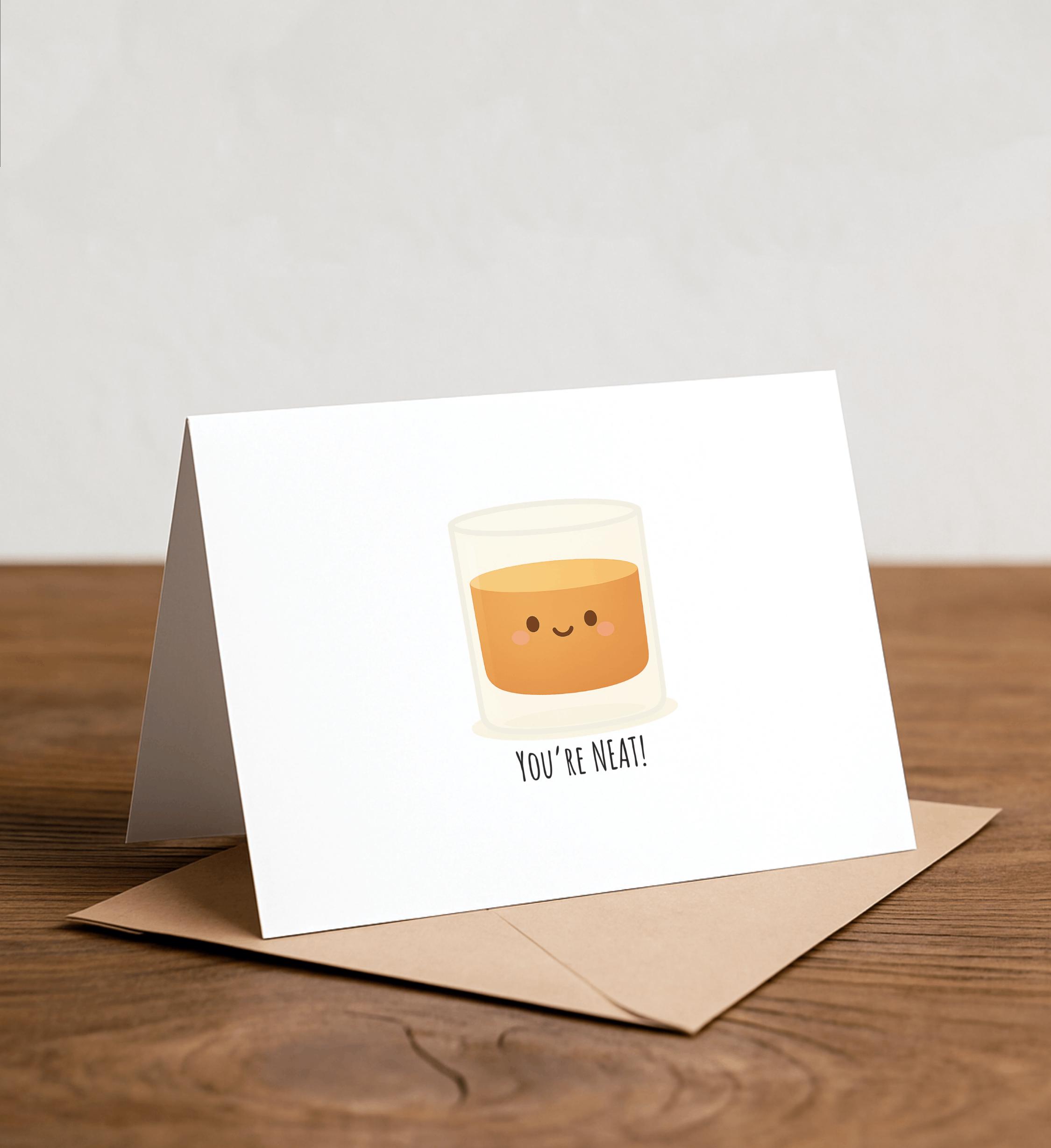 YOU'RE NEAT - Whiskey Greeting Card, Note Card, Funny valentine, Thank you card, dad joke, neat, single malt, love card, cute