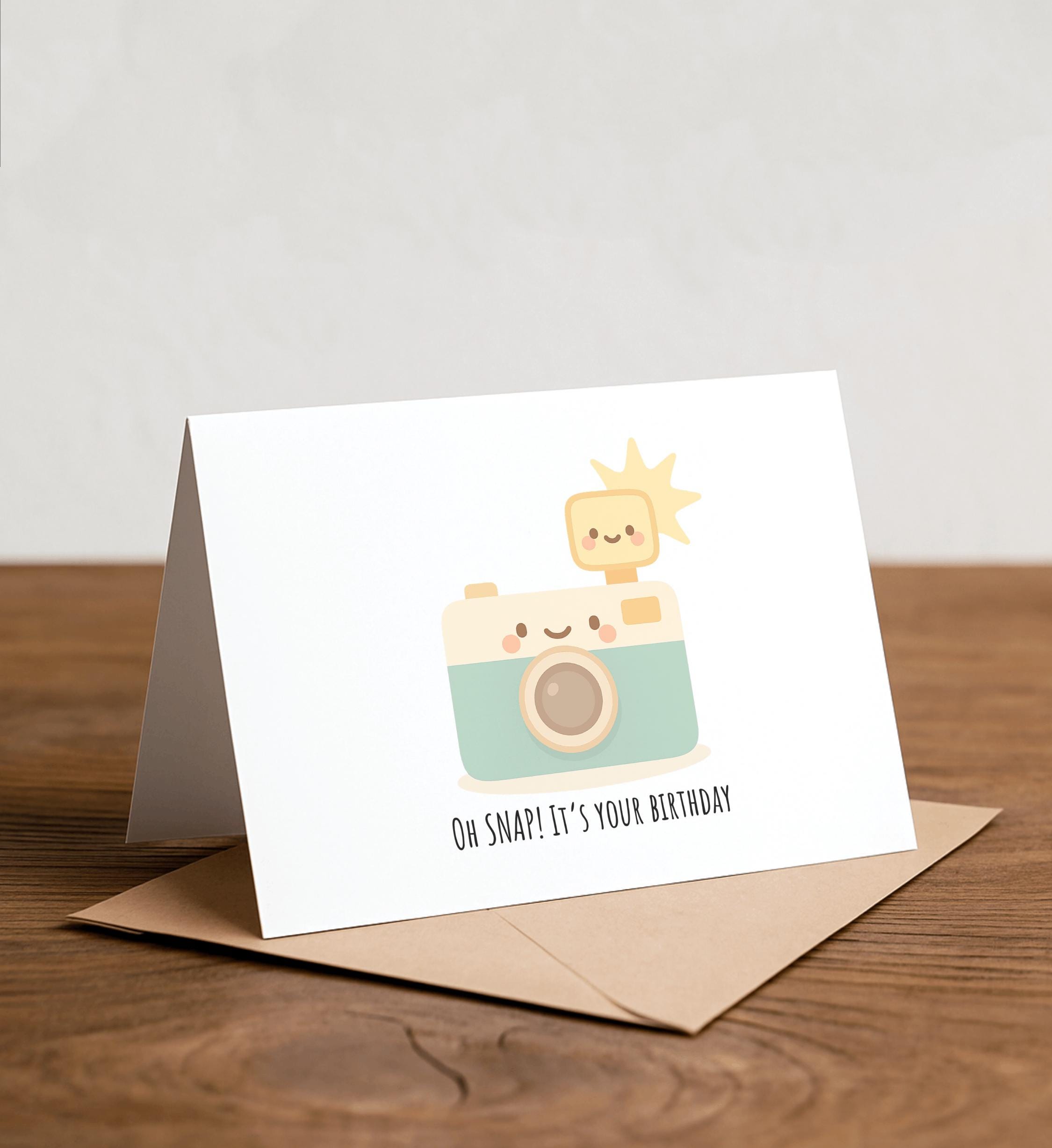 Oh SNAP! It's your birthday - Camera Emoji Greeting Card, Happy Birthday Card, Handmade Card, Photography card, Birthday Card, Pun, Snapchat