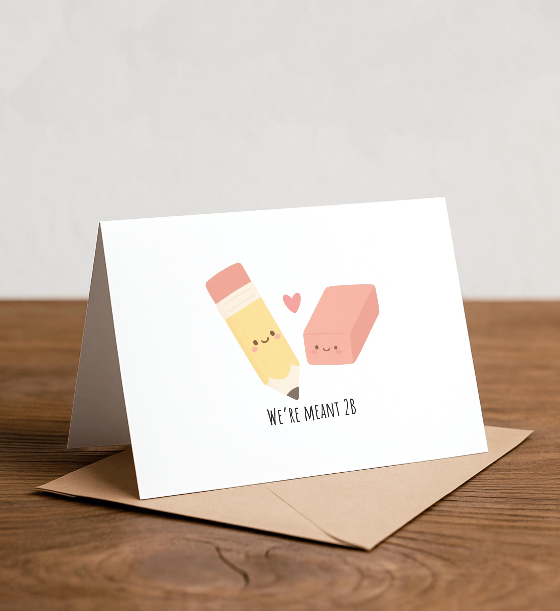 We're meant 2B - Pencil Greeting Card, Happy Card, I Love You Card, Birthday Card, Pun Card, Punny Greeting Card, Eraser, School Supplies