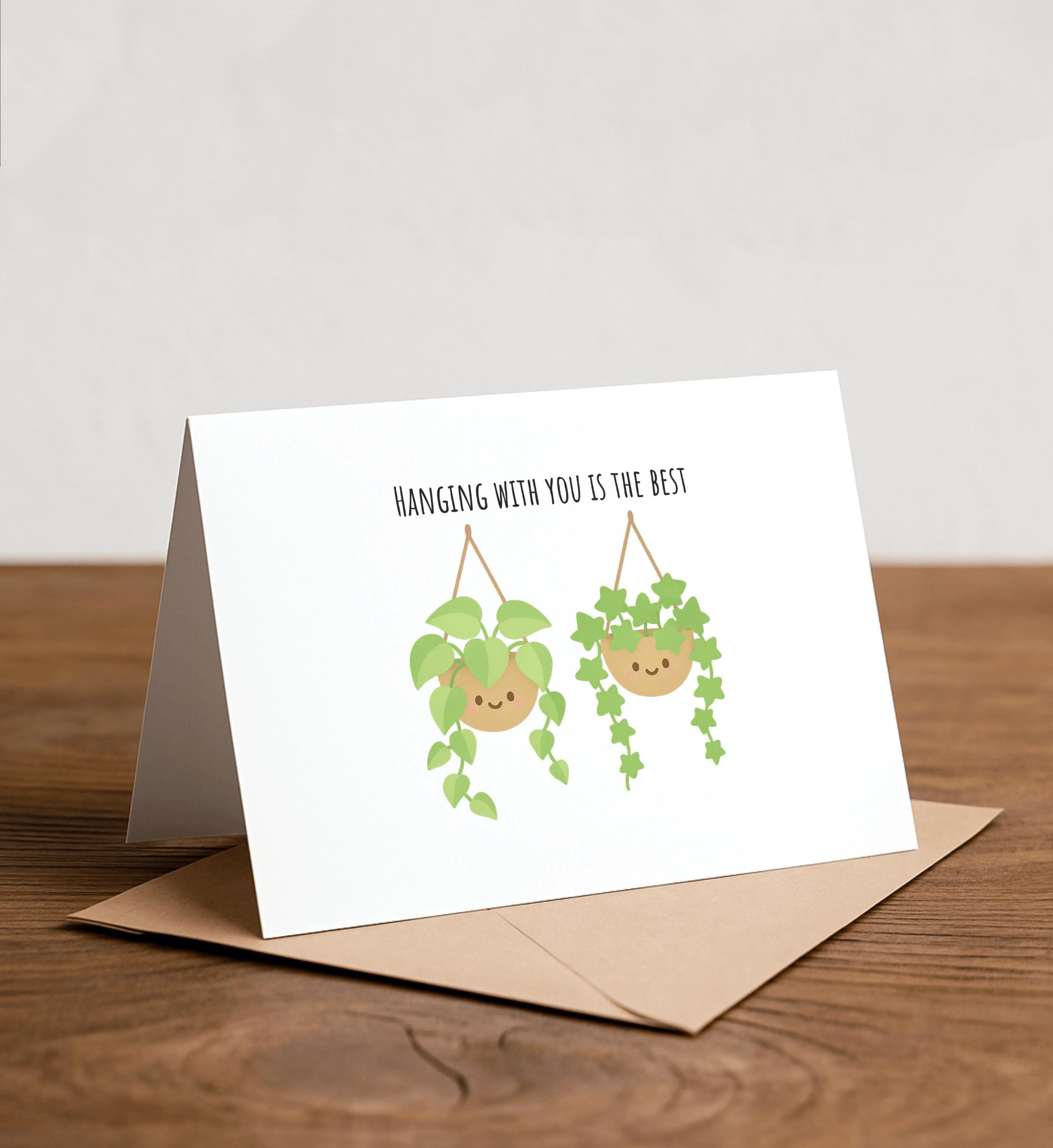Hanging with you is the best - Hanging Plant Greeting Card, Note Card, Funny valentine, Thank you card, Dad joke, Pothos, indoor plant